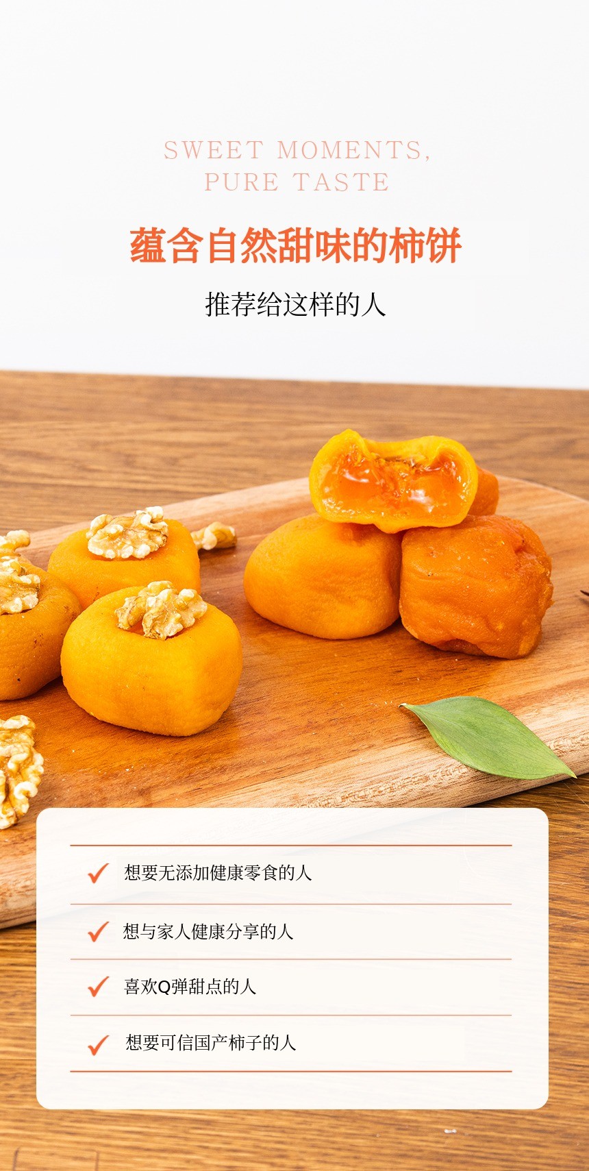 1. 🍊 湿润Q弹的半干柿子 - 自然甜味与Q弹口感兼备 2. ⚠️ 含籽食用注意 - 半干柿子内含籽,食用时需注意 3. 🎁 高档礼品零食 - 精美包装,适合赠送