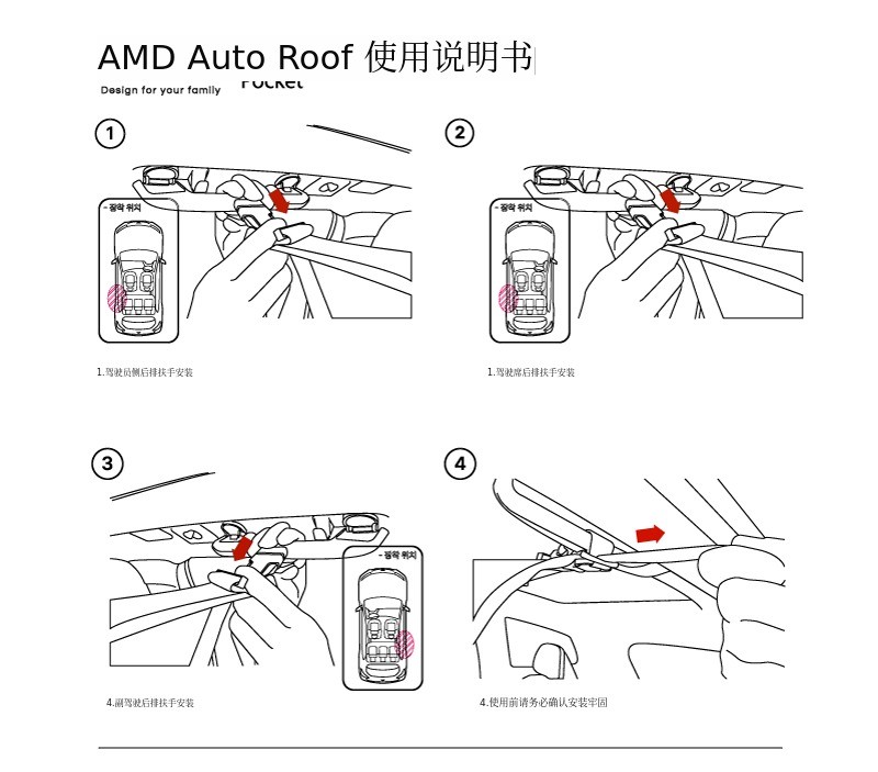 利用车辆副驾驶、第二排把手 仅此即可使用,