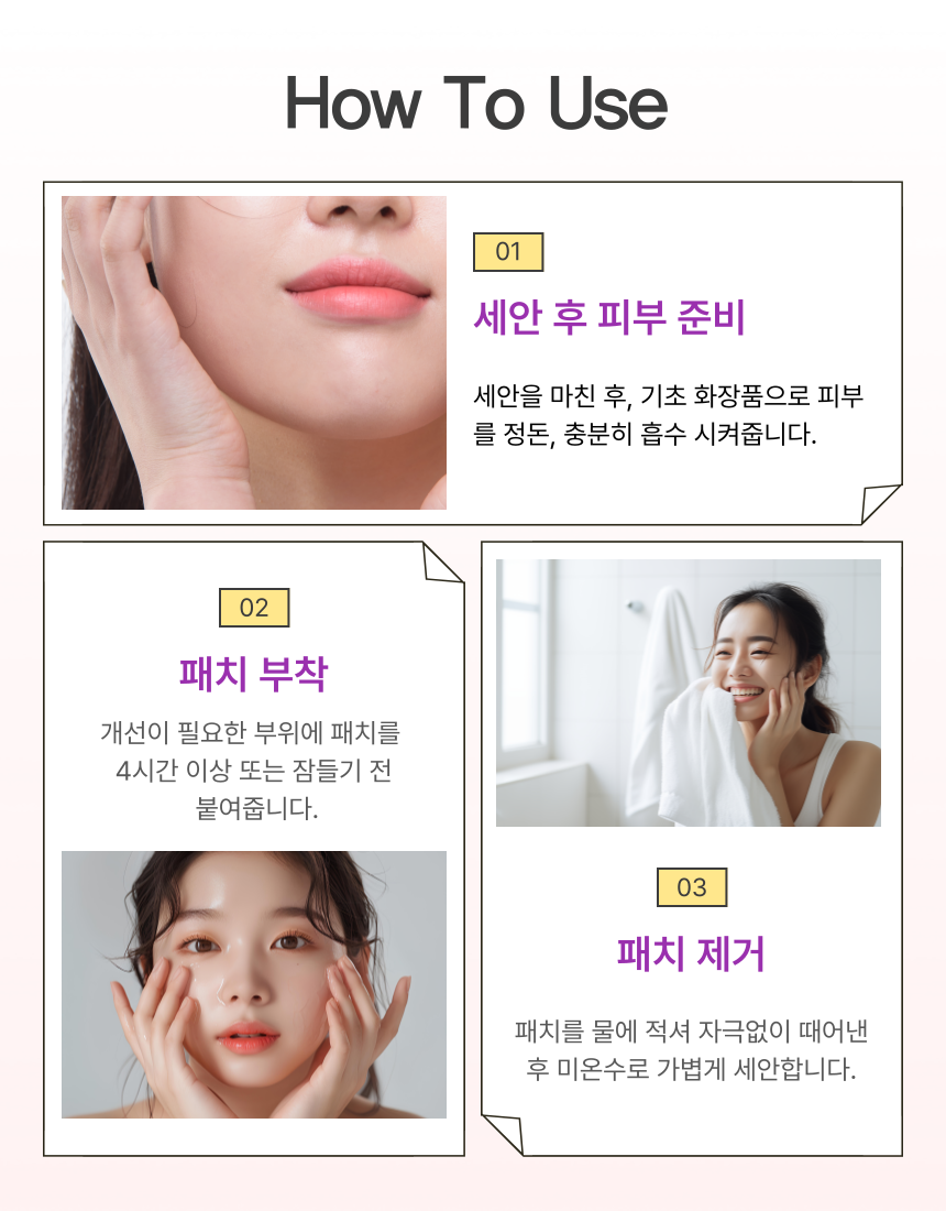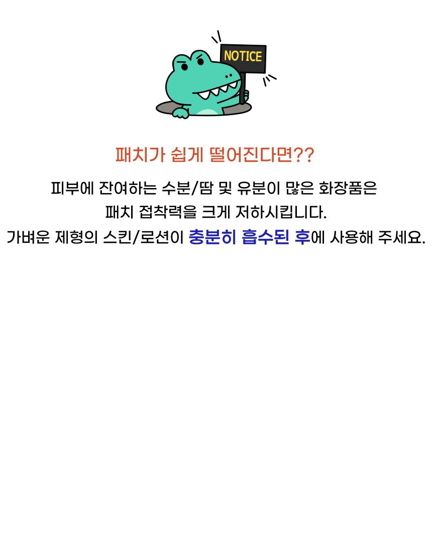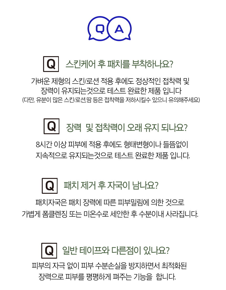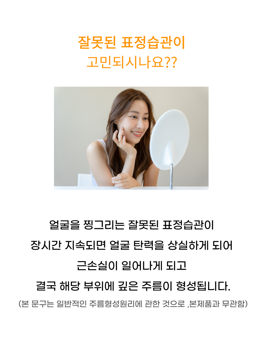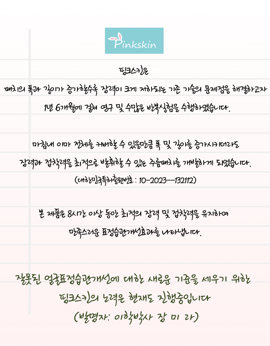 본 제품은 8시간 이상 동안 최적의 장력 및 접착력을 유지하여 만족스러운 표정습관개선효과를 나타냅니다.
