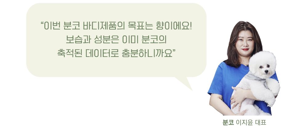프리미엄 브랜드 분코는 그동안의 제품들로 검증된 보습 성분의 데이터가 넘쳐났어요. 그리고 매일 사용하는 바디제품에는 무엇보다 ‘향'이 제일 중요하다고 생각했습니다. 하루의 피로를 한 방에 날려줄 수 있는 매력적인, 바로 그 향이요.
