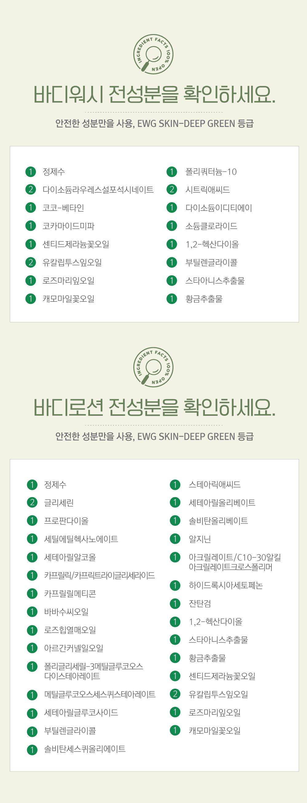 EWG 그린 등급 성분과 천연 오일을 사용한 건강한 바디로션
