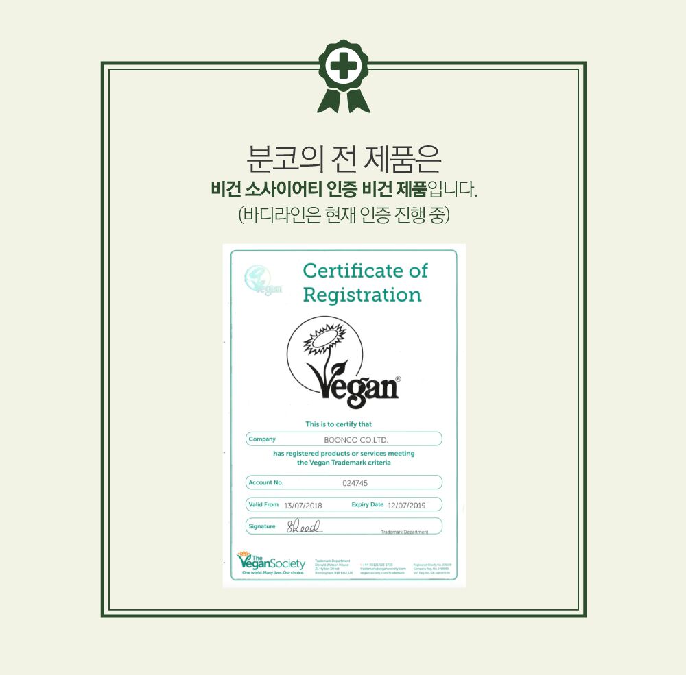 분코의 기존 제품 중 키즈 치약과 페미닌 워시는 세계에서 가장 오래된 영국의 비건 단체인 비건 소사이어티(The Vegan Society)의 인증을 거쳐 만들어졌습니다. (분코 바디 제품은 완제품이 나오는대로 인증 예정이며, 새소식을 통해 전달드릴 수 있습니다)