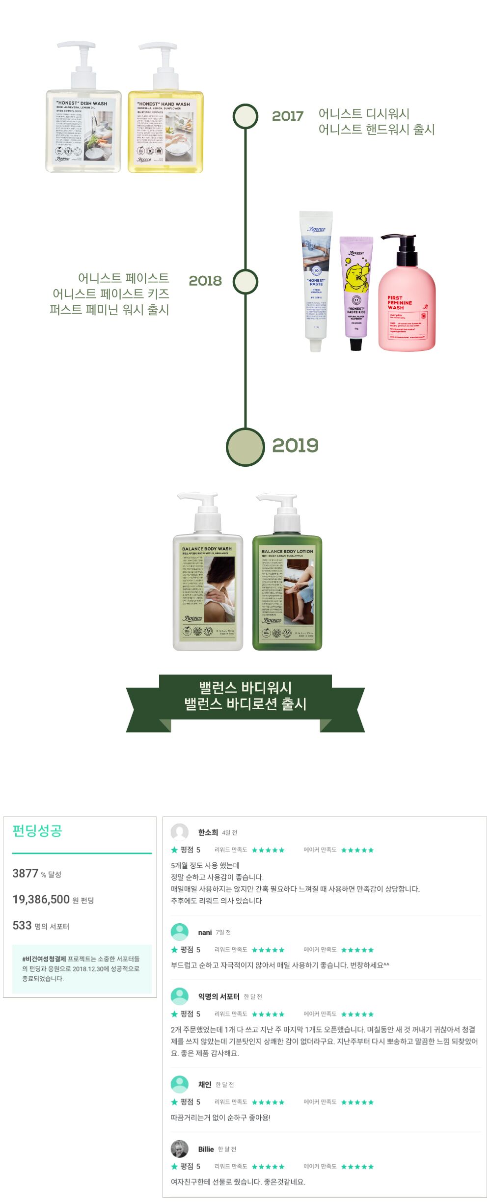 여러분의 성원에 힘입어 와디즈에서 또 인사드리게 되었습니다. 분코는 이미 많은 분들께 건강하고 안전한 핸드워시, 디시워시, 치약, 여성청결제로 인정받으며, 명실상부 프리미엄 패밀리 & 홈케어 브랜드의 대표가 되었습니다. 이제는 먼저 알아봐주시고, 국내는 물론 해외에서도 구입 문의가 올 정도로 성장하고 있습니다. 특히 고정 마니아층이 탄탄한 브랜드로 유명합니다.