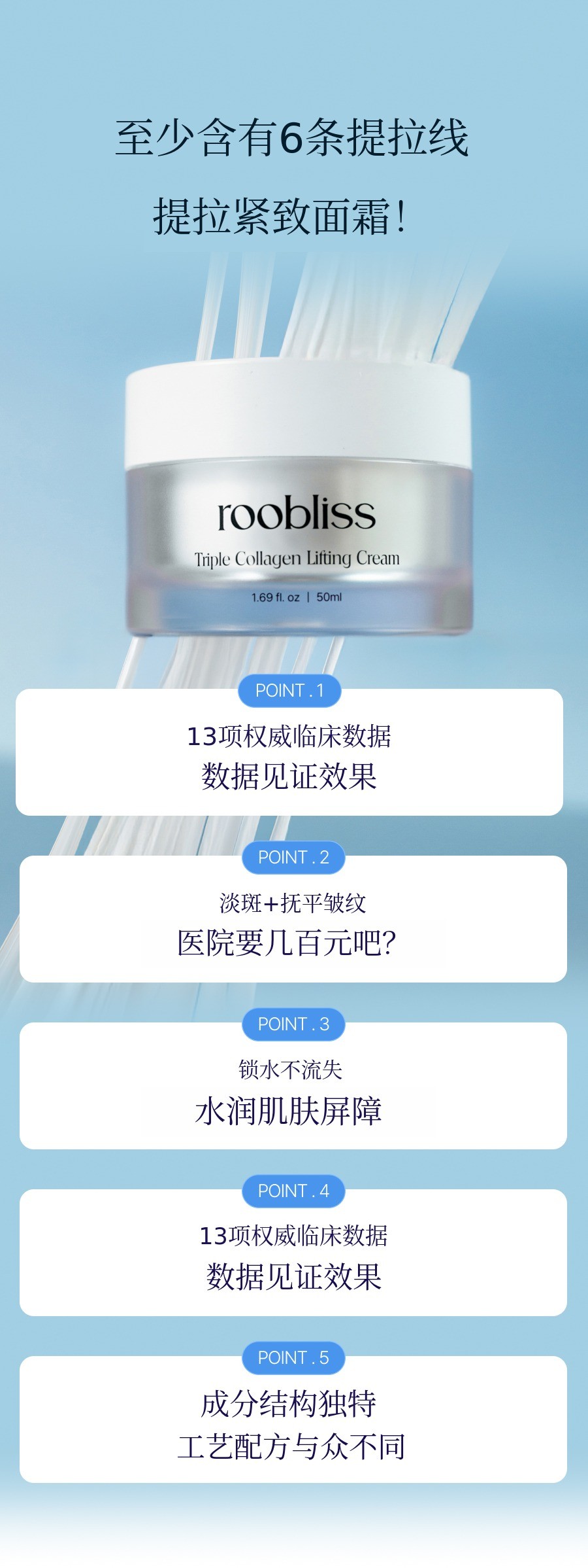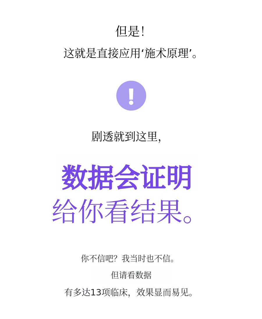 我们更想专注于‘验证’这款产品,而不是宣传。因此不是做广告,而是投资于临床。 通过13项临床数据,我们确认了皮肤密度、保湿、皱纹、毛孔改善等远超普通保湿霜的效果。