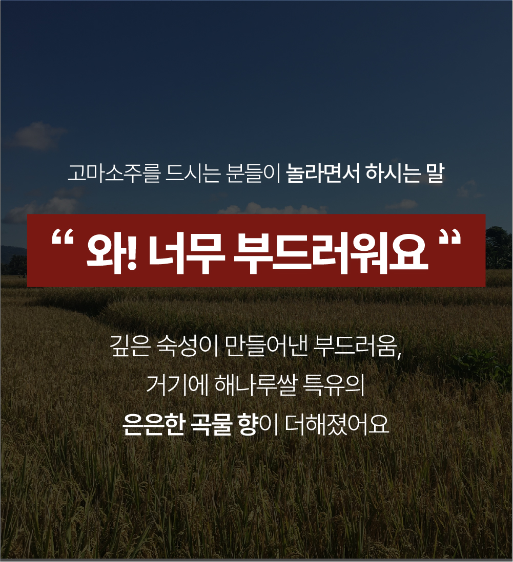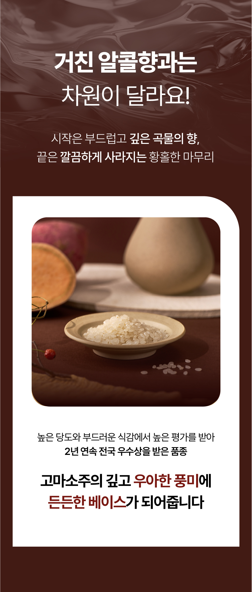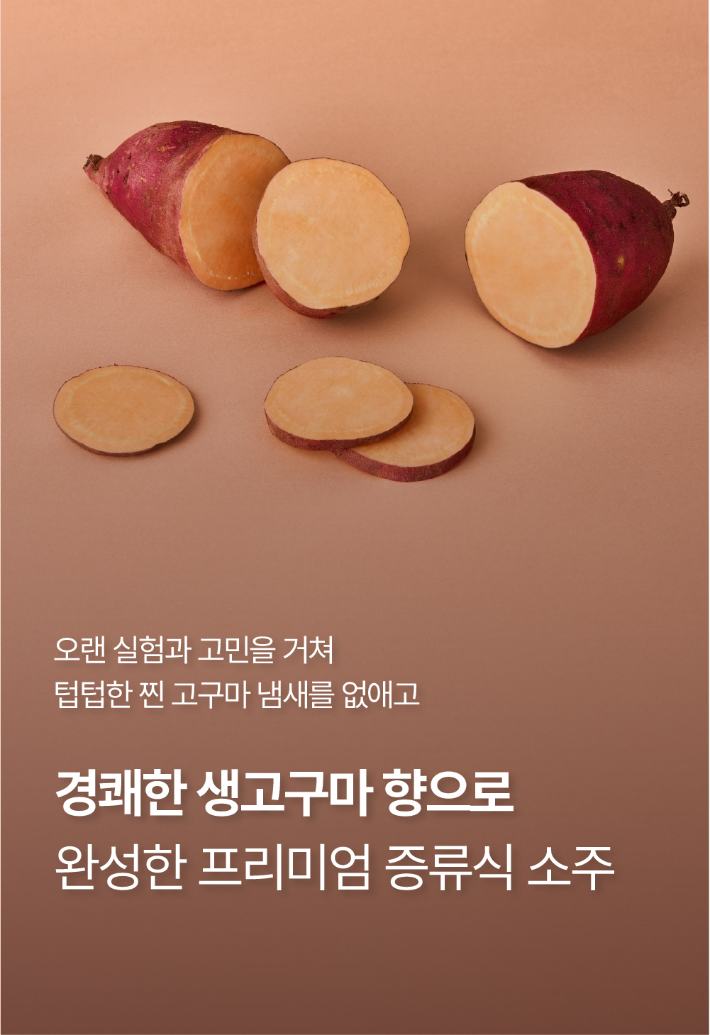 이번에 선보이는 증류식 소주는 국내에서 쉽게 접하기 어려운 새로운 형태의 전통 증류주로, 고구마 소주시장을 새롭게 선도해 나가는 제품으로 자리매김하고 싶습니다.