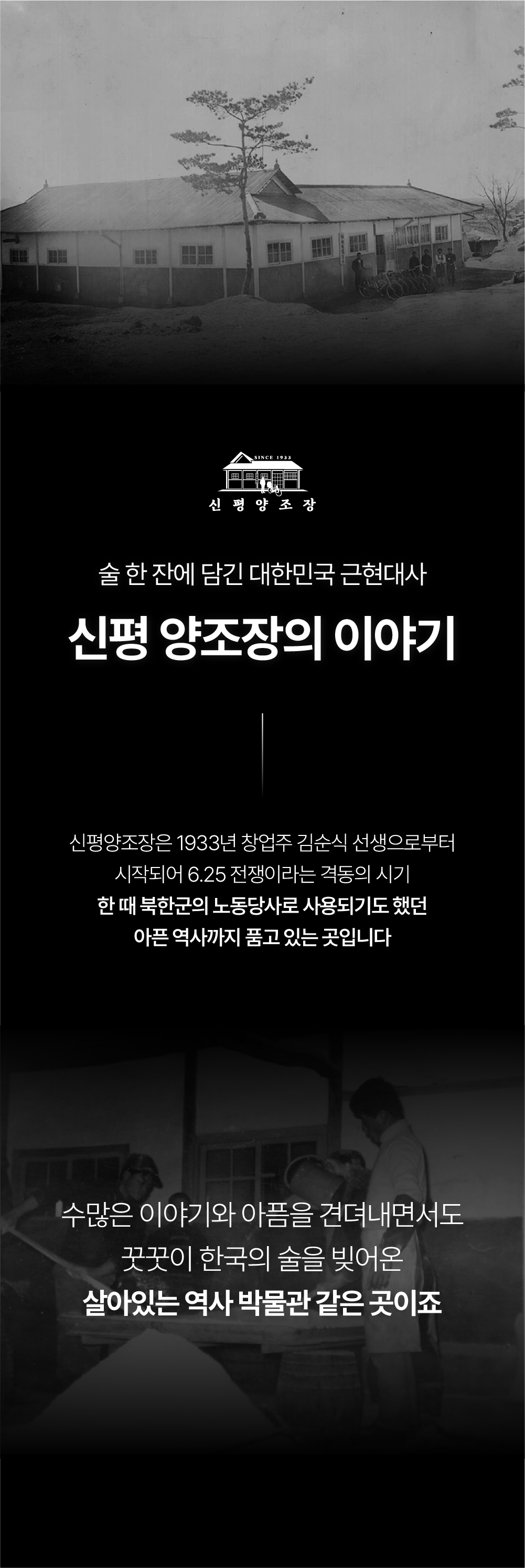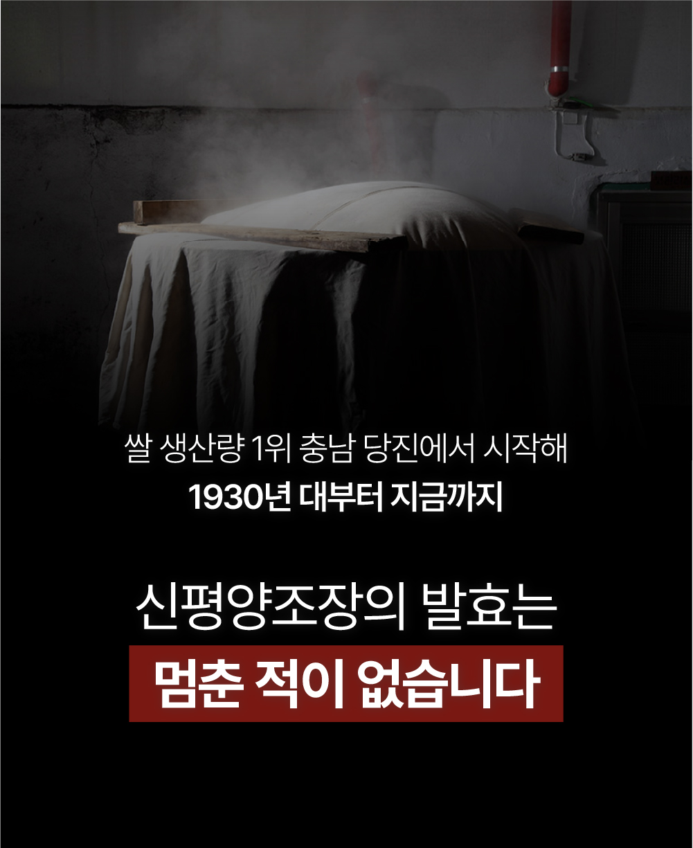 신평양조장은 충남 당진 소재 100년 전통의 막걸리 양조장으로 현재 충남 '이어가'에 선정된 업체입니다. 1933년에 창업하여 3대째 가업을 이어오고 있으며, 2대 김용세 씨는 연잎주의 전통을 계승하는 대한민국식품명인 제79호로 지정되었습니다.