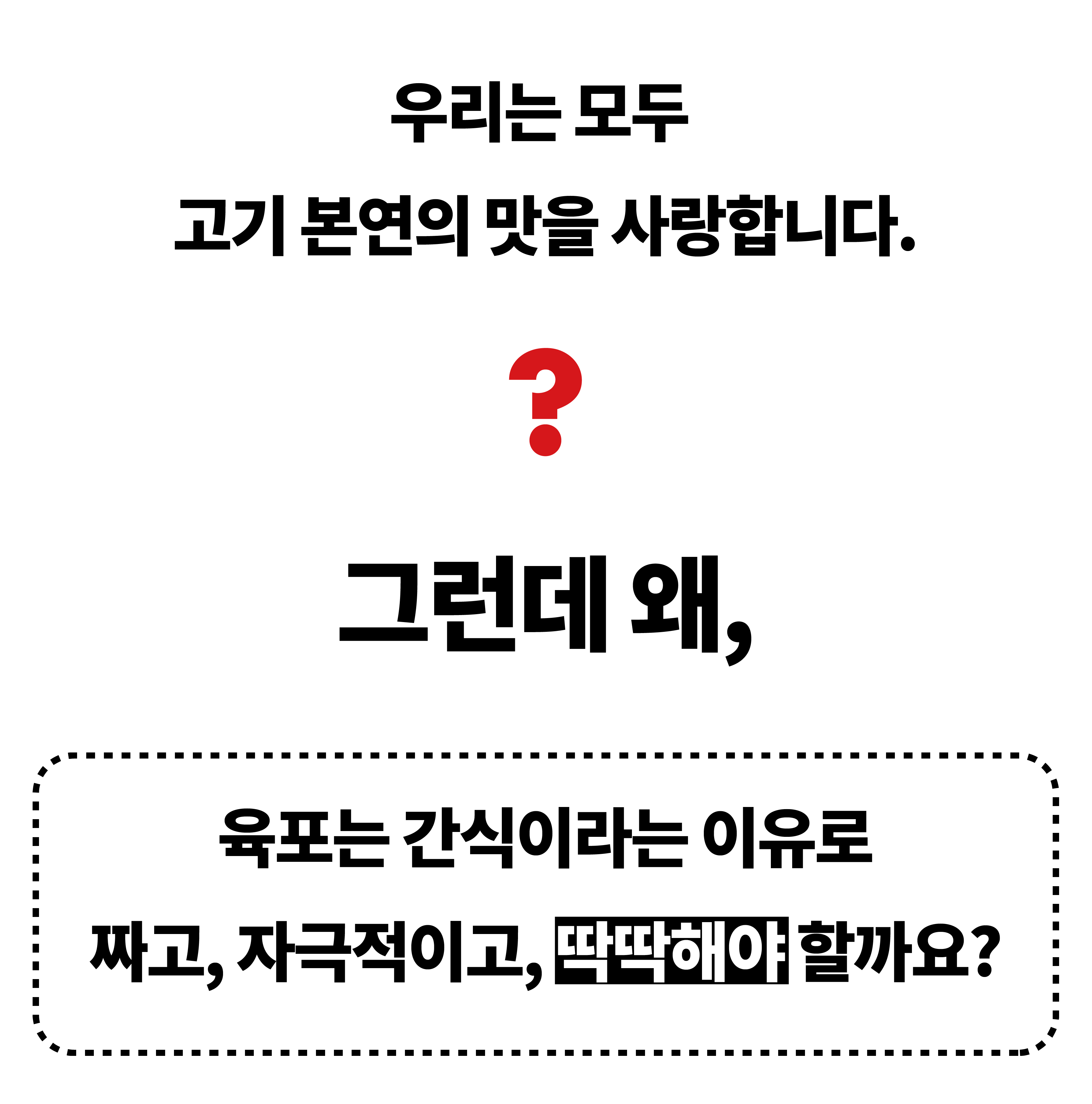 우리의 목표는 단순히 ‘맛있는 육포’를 만드는 것이 아닙니다.