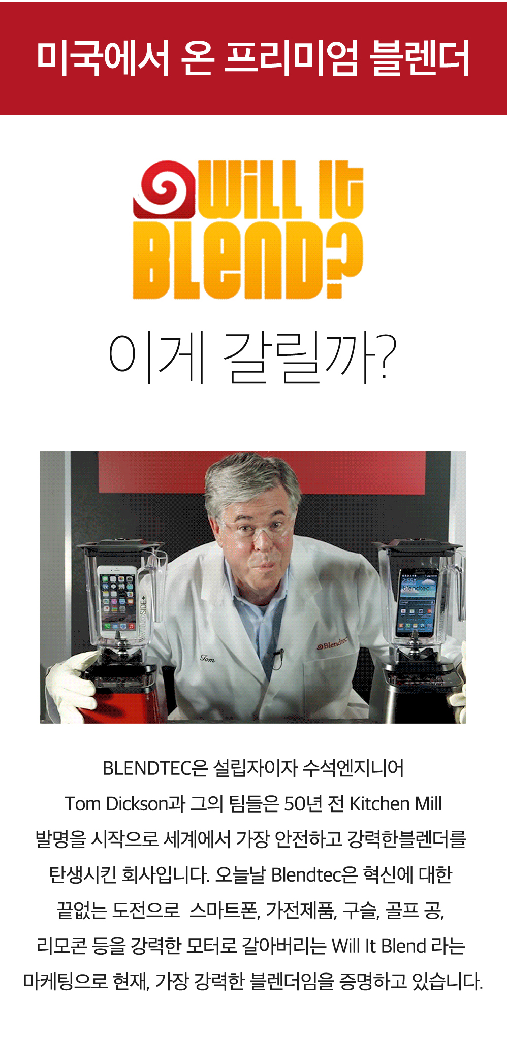 안녕하세요! Blendtec은 상업용 및 가정용 블렌더를 제조/판매하는 블렌더 전문 회사입니다.회사는 1975년에 설립되었고 본사는 미국 유타주 오렘에 위치해 있습니다.