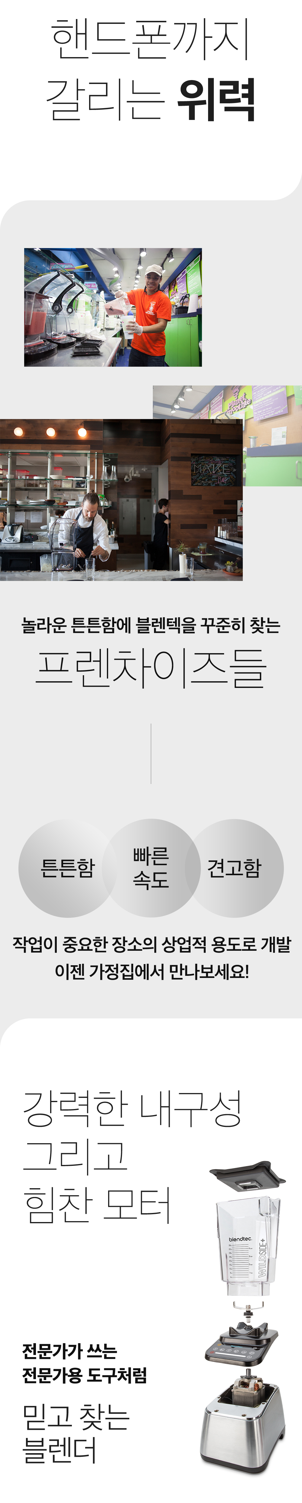 또한 강력한 모터와 내구성으로 현재 이**커피, 베스킨*** 등 수 많은 글로벌 카페에서 실제로 사용되고 있으며, 이제 그 기술력을 가정에서도 만나보실 수 있습니다.
