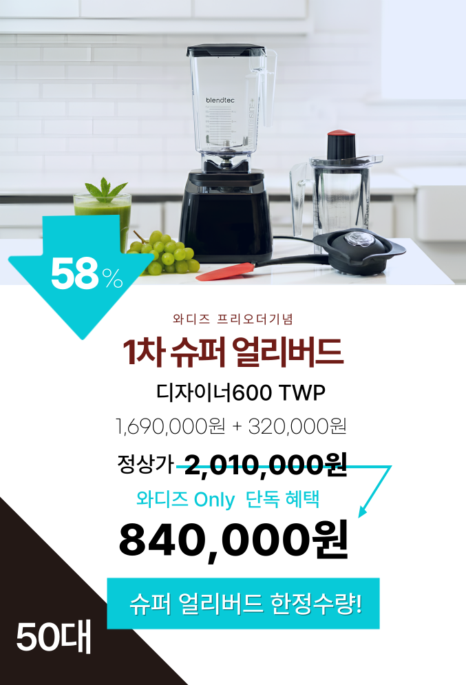 이번 와디즈 펀딩은 Blendtec Designer 600TWP 트위스터자 패키지를 보다 많은 분들께 투명하고 신뢰 있게 소개하기 위한 자리입니다.