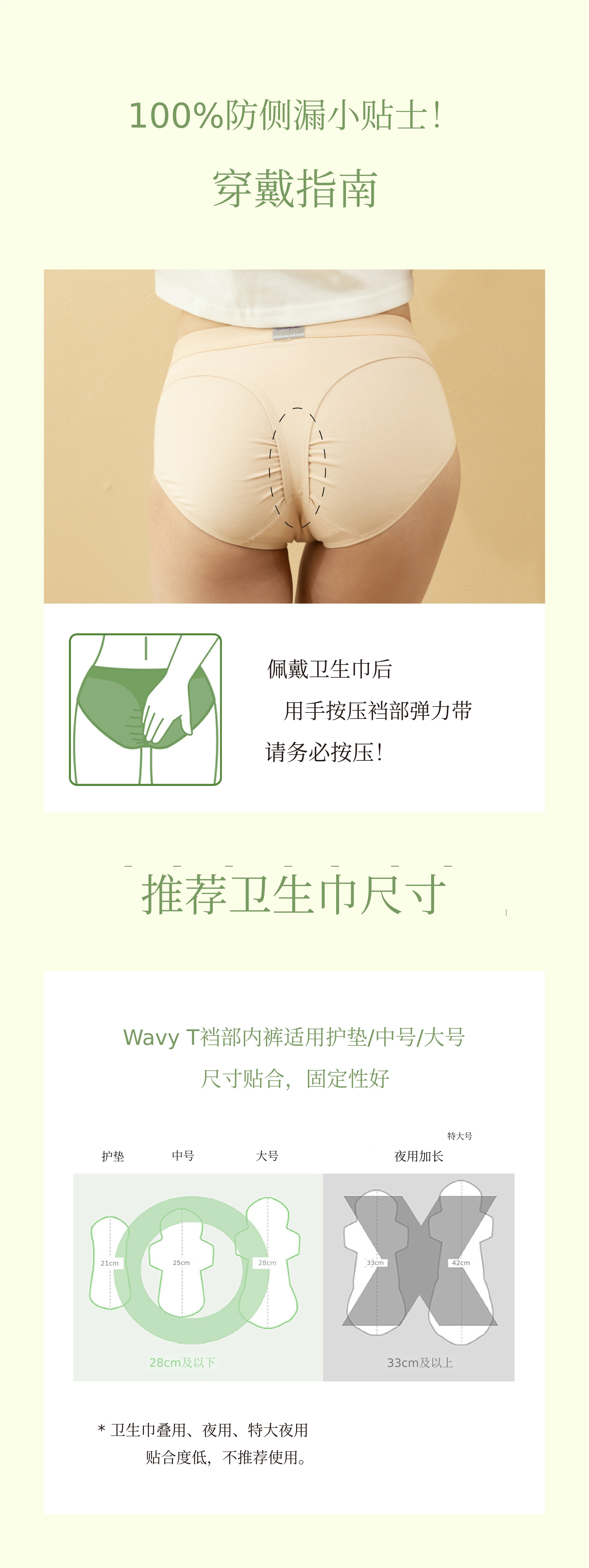 比起解释100次,穿一次骨贴内裤更有说服力只要试穿一次,您就能理解为什么叫“骨贴”。 虽然无法让所有人的需求都100%满意,T型骨贴部分能很好地固定卫生巾,让您安心,并有效防止后漏,我们对此充满自信。