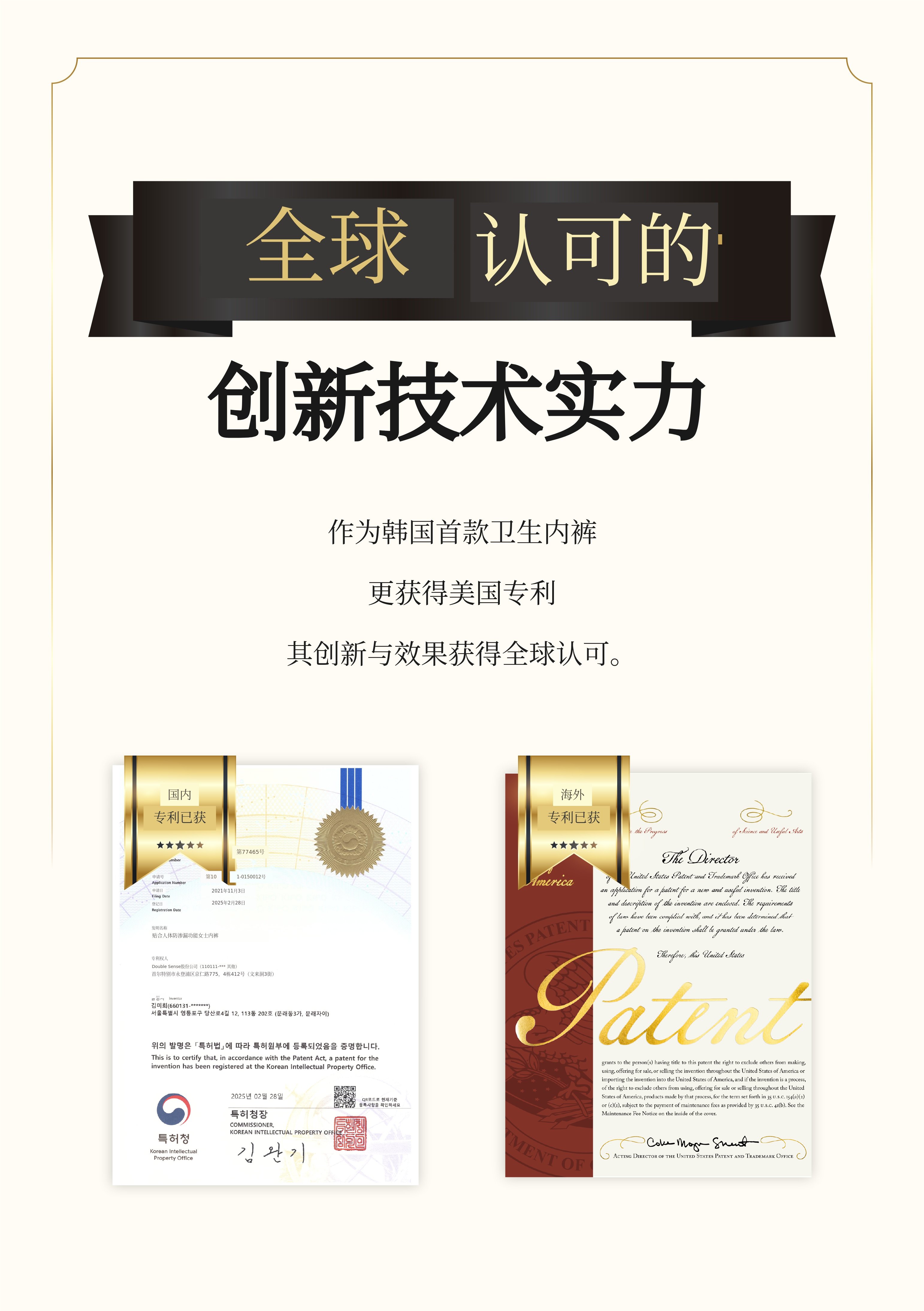 作为首先经历过生理期不便的女性,也是两个女儿的母亲, 怀着希望女性能从生理期中解放出来的心情,真心投入到产品开发中。多亏如此,不仅在国内,甚至还获得了美国专利。