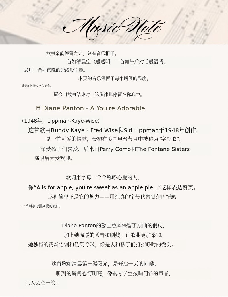 在阅读书中的故事和食谱时,可以一同欣赏如背景音乐般流淌的爵士旋律。