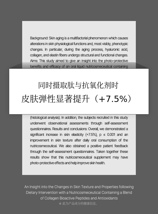 ✔ 皮肤弹性+7.5%(肽+抗氧化协同临床依据)
