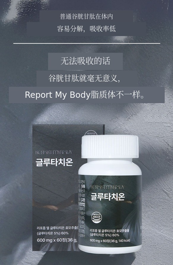 ReportMyBody将天然发酵酵母来源的“还原型谷胱甘肽”用脂质体包裹,