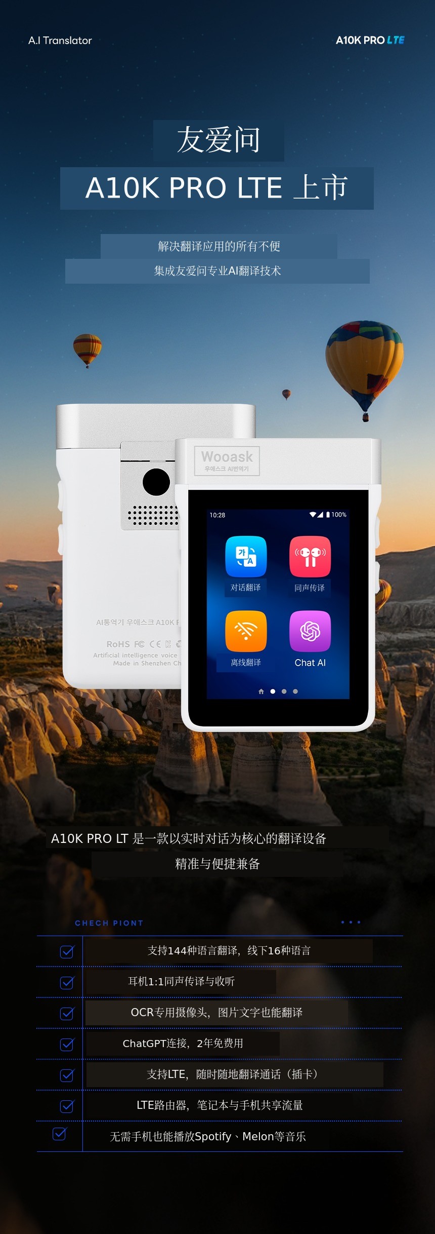搭载ChatGPT的LTE AI实时翻译器——友爱讯A10K PRO全新上市