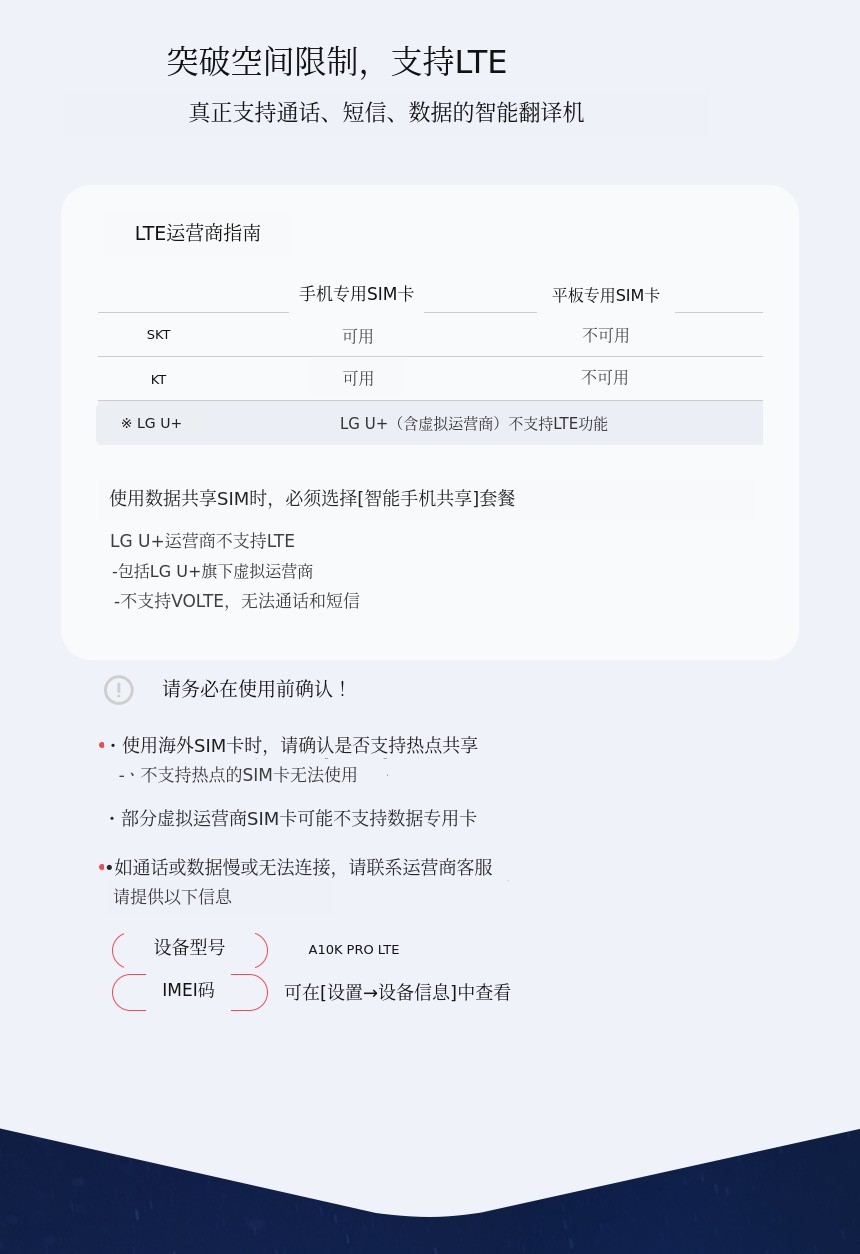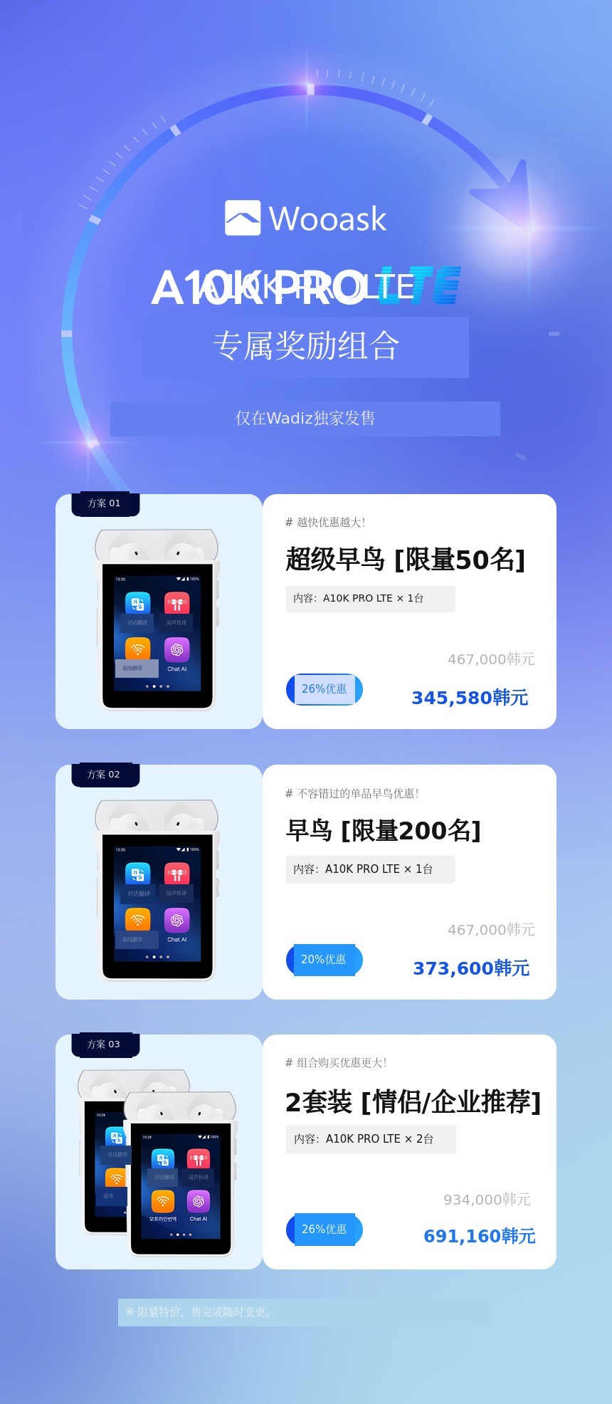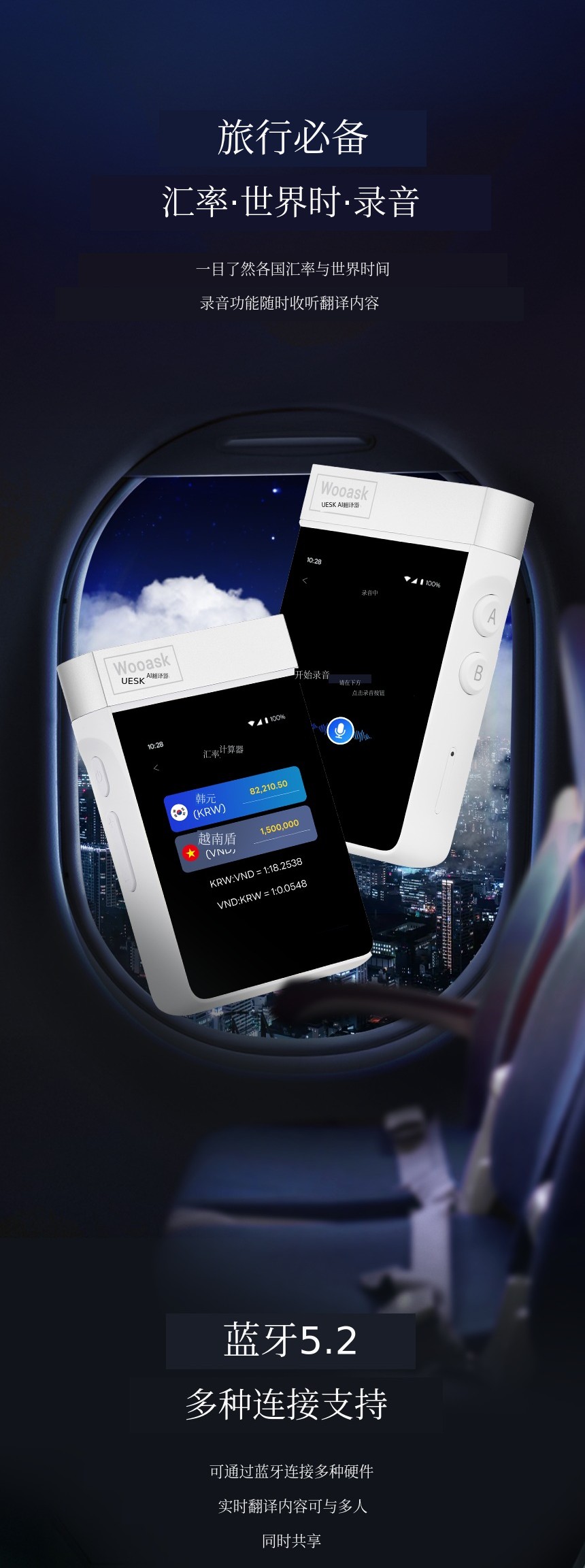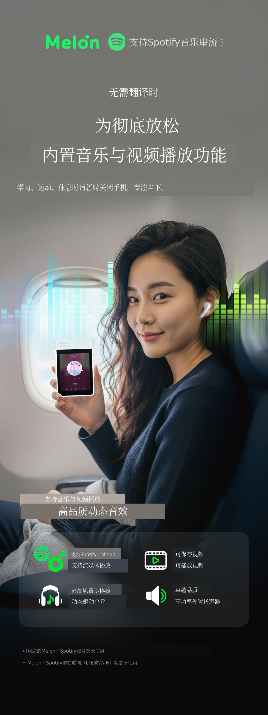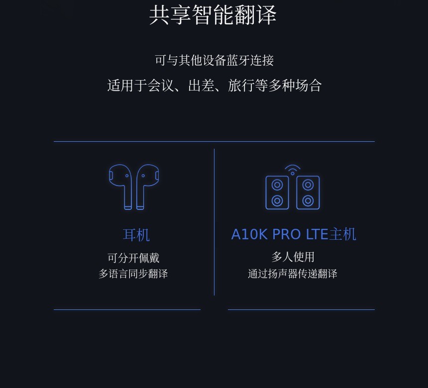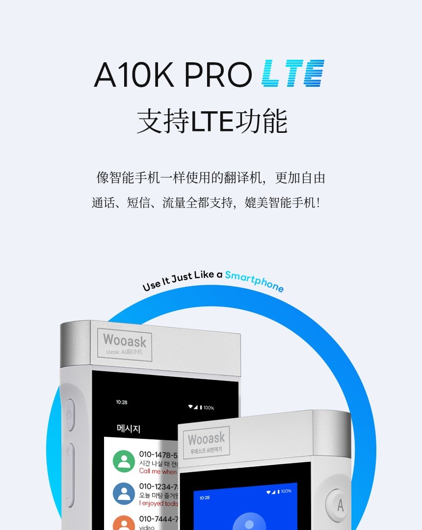 更进化的AI翻译器友爱速 A10K PRO LTE 无论全球何处,一机实现AI同声传译、电话通话、ChatGPT、数据共享及音乐流媒体 即使无网络环境,也内置16种语言,随时随地轻松交流