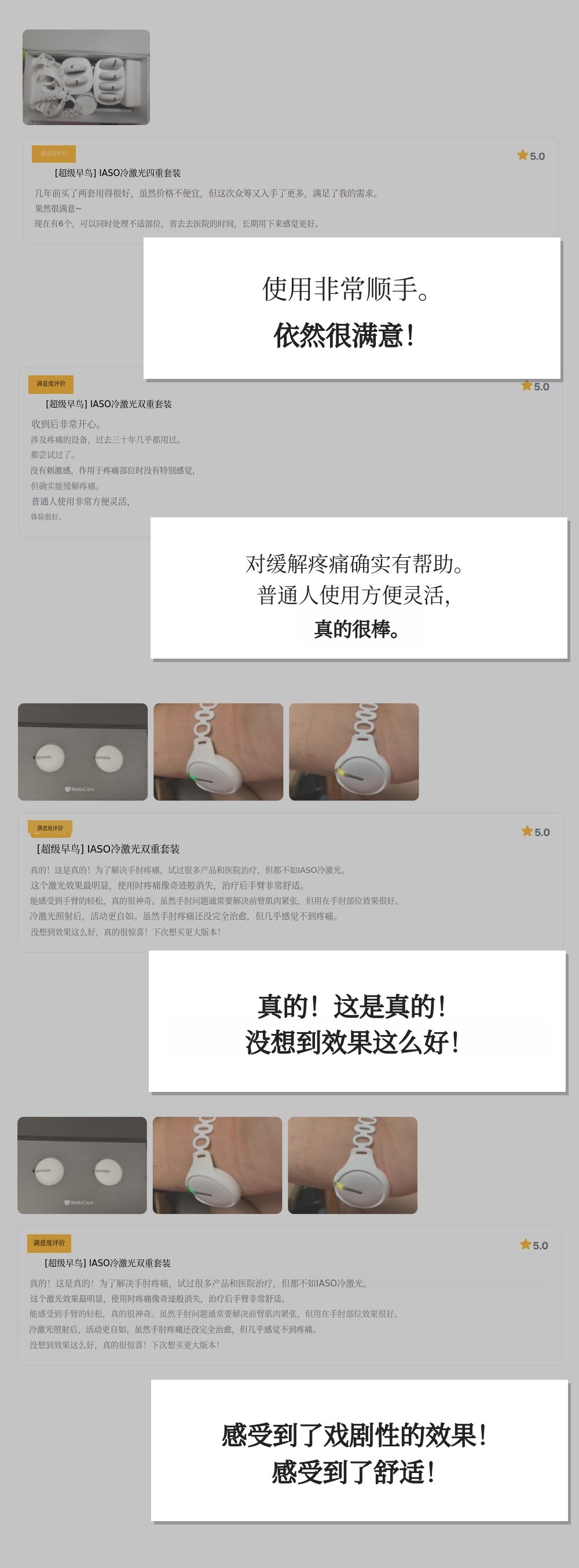 WellsCare一直以来在冷激光止痛治疗的主要市场——北美市场,以首创的“可穿戴冷激光自我护理解决方案”这一创新医疗器械获得了好评。Wadiz作为在韩国拥有众多寻找创新最新技术和感性产品的年轻消费者的平台,我们认为会有很多人寻找像我们IASO冷激光产品这样进阶型的医疗器械。希望在海外先获得认可的IASO冷激光产品在国内也能广泛使用,帮助现代人无法避免的众多肌肉骨骼疼痛疾病得到解决。