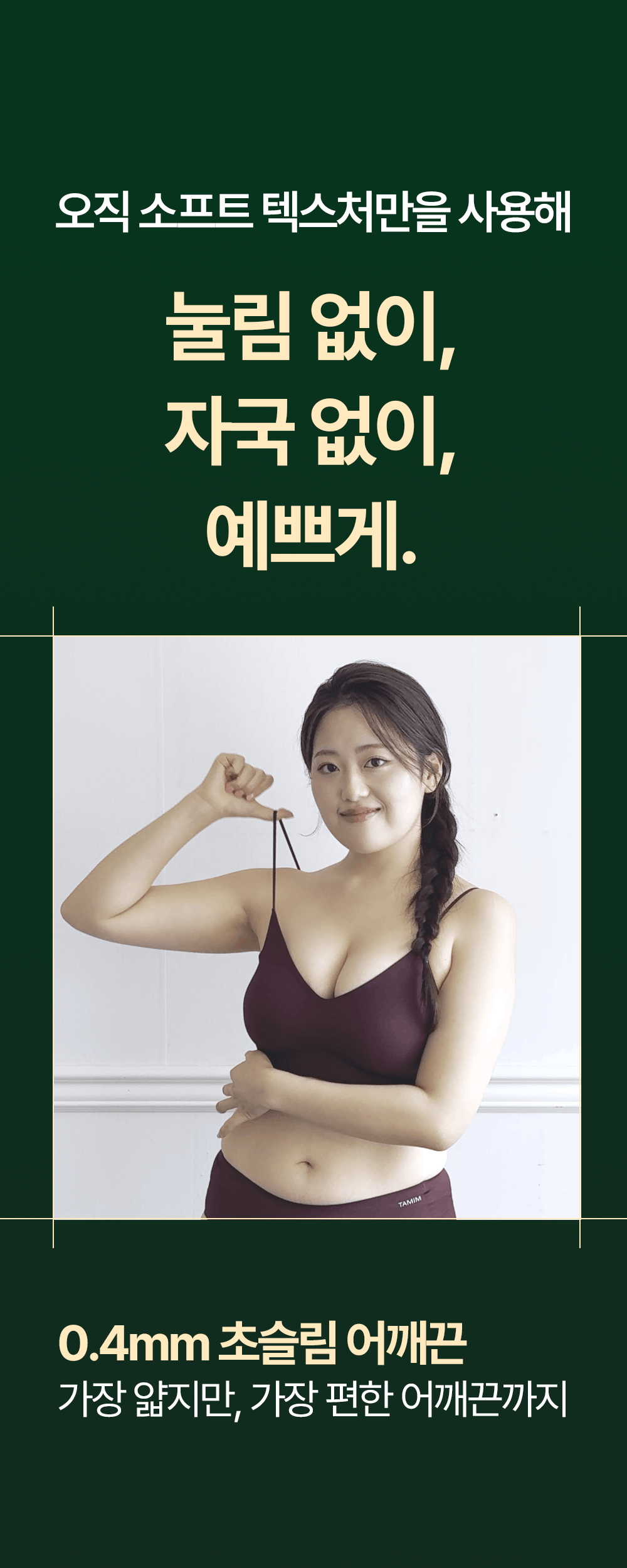 在压力重重的现代生活中,타밈内衣诞生于对身体舒适的渴望。穿错内衣导致一整天紧绷不适,这样的烦恼,谁都经历过。