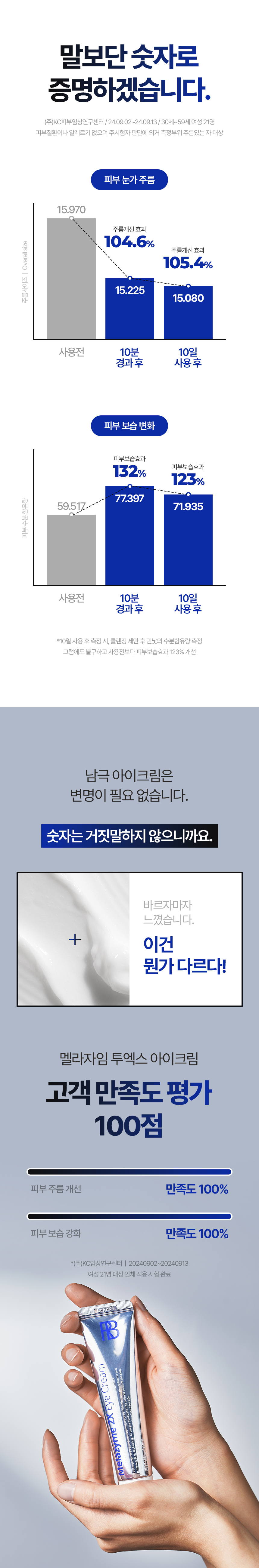 연구만을 전문적으로 진행하며, 제품 생산은 믿을 만한 외주 업체를 통해 최고 품질로 진행하고 있습니다. 제품 개발에 대한 60년 이상의 노하우를 바탕으로 전문 석학들과 함께 공동 개발한 아이크림. 광고 마케팅은 최소화하고 제품 기능성에 온 힘을 쏟아부었습니다.