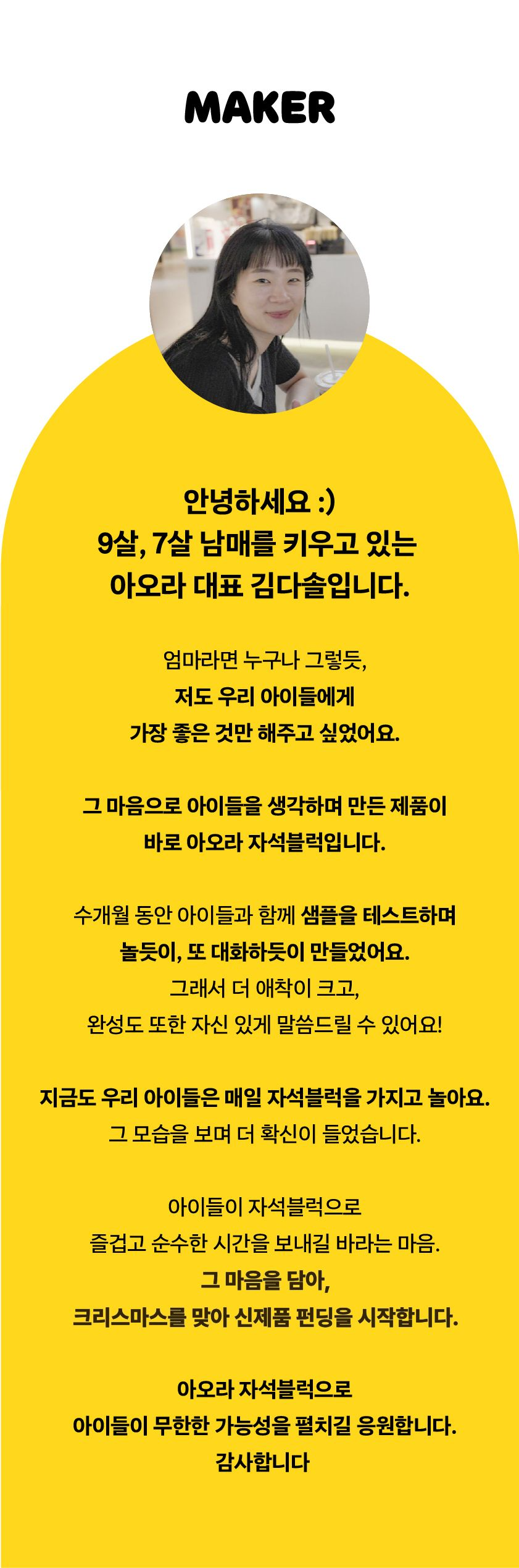 와디즈를 선택한 이유는 새로운 와디즈 팬들과 만나고 싶어서였어요. 신제품이 나왔을 때 와디즈에서 먼저 선보이고 싶었고, 와디즈가 고객들과 더 가까이 소통할 수 있는 플랫폼이라는 느낌이 들어서 선택하게 되었습니다. 서포터님들의 소중한 피드백을 바탕으로 더욱 완성도 높은 제품을 만들어가고 싶고, 와디즈를 통해 더 많은 분들과 함께 성장할 수 있기를 바랍니다.