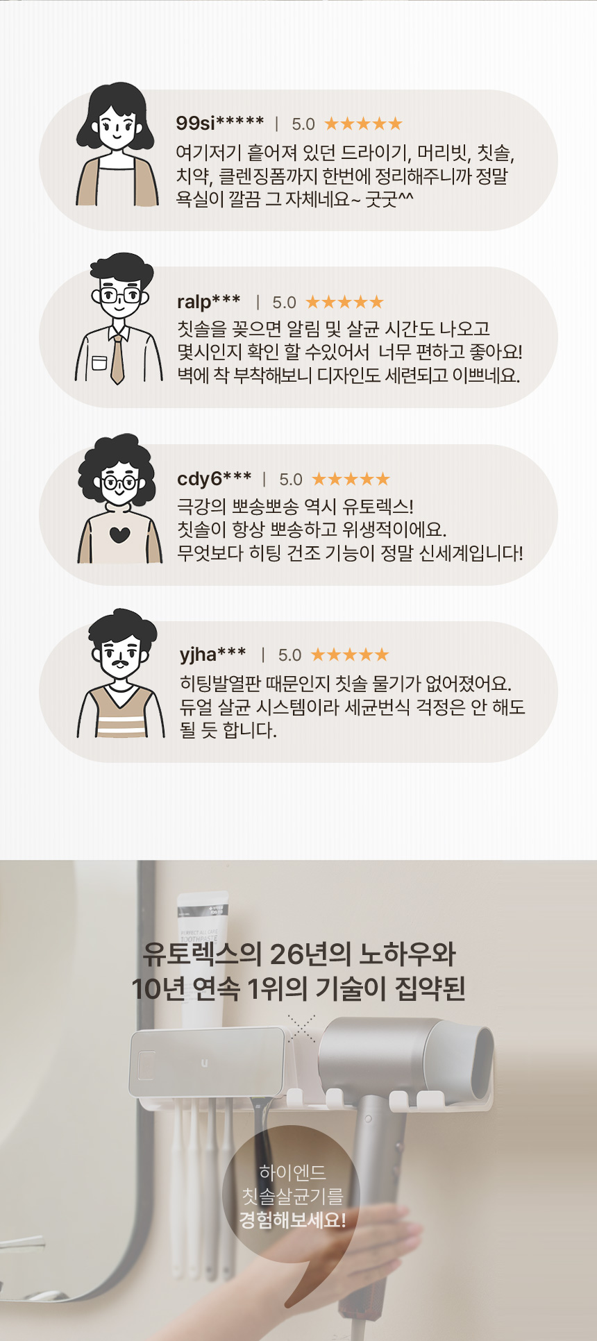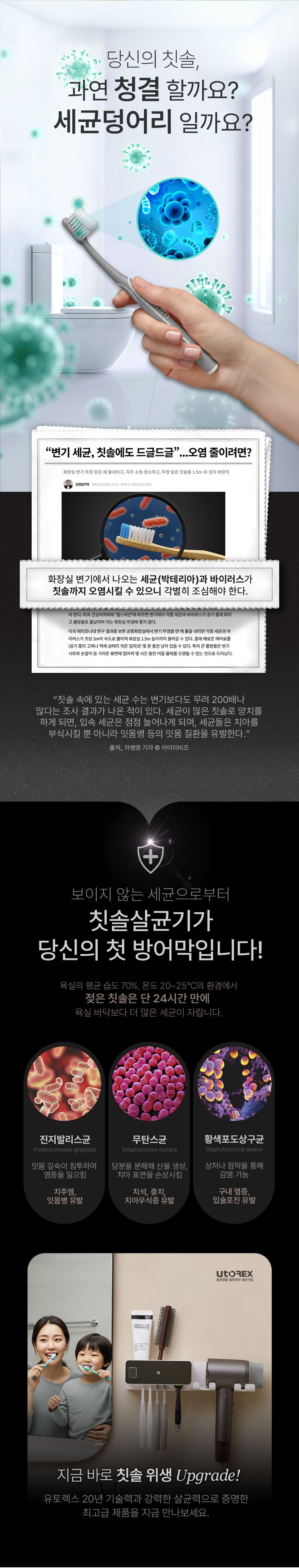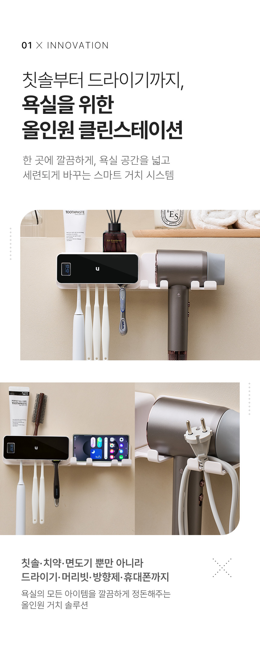 1. 🦷 一体化浴室清洁站 - 牙刷与吹风机99.9%UV-C杀菌加热干燥 2. 🛁 浴室卫生与整理创新 - 阻断细菌繁殖,节省空间,提升装修效果 3. 🎁 限量折扣优惠 - 牙刷杀菌器与吹风机套装最高54%优惠