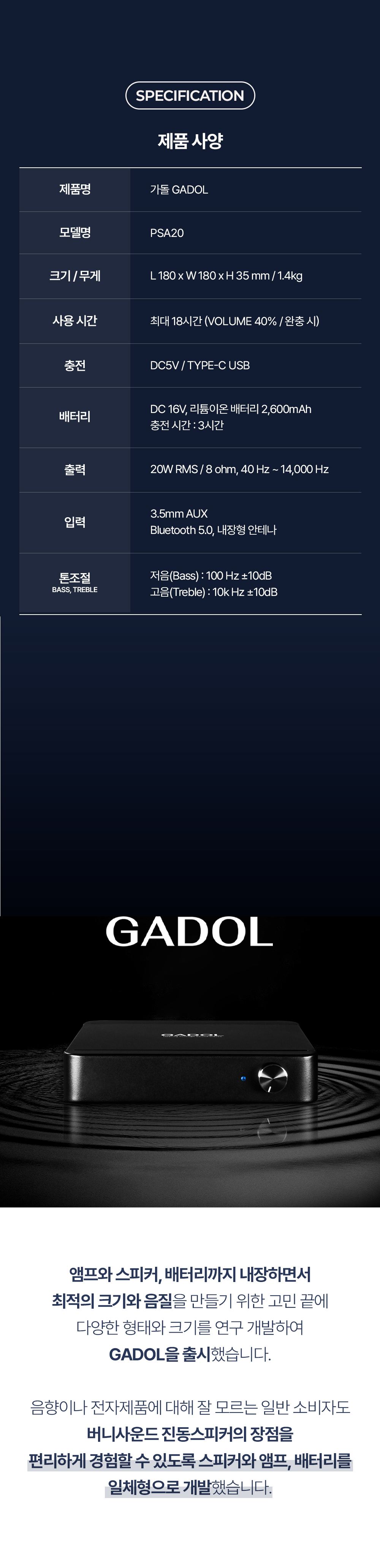 가돌을 올려두는 곳 전체가 스피커가 됩니다