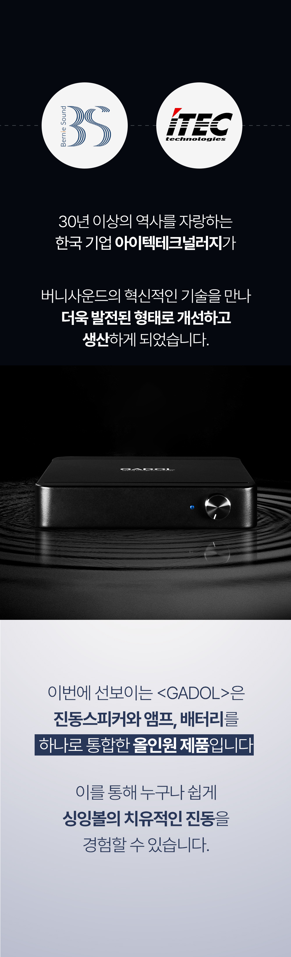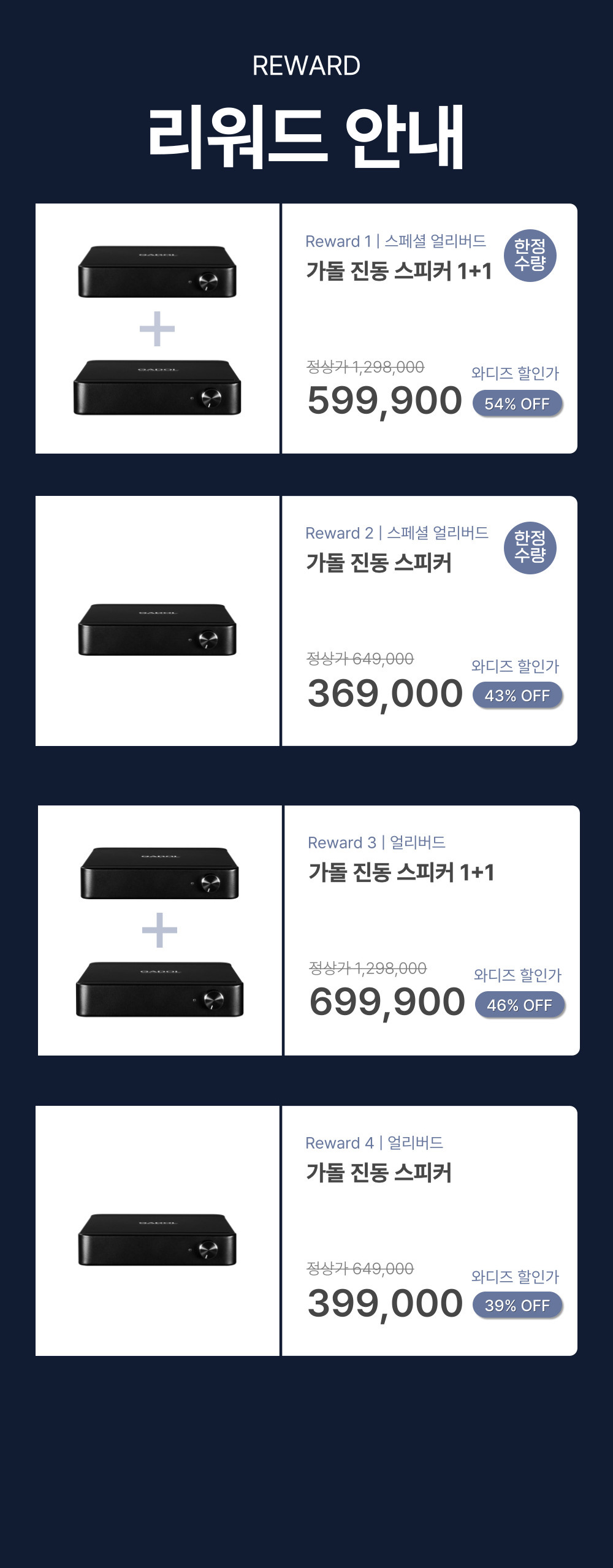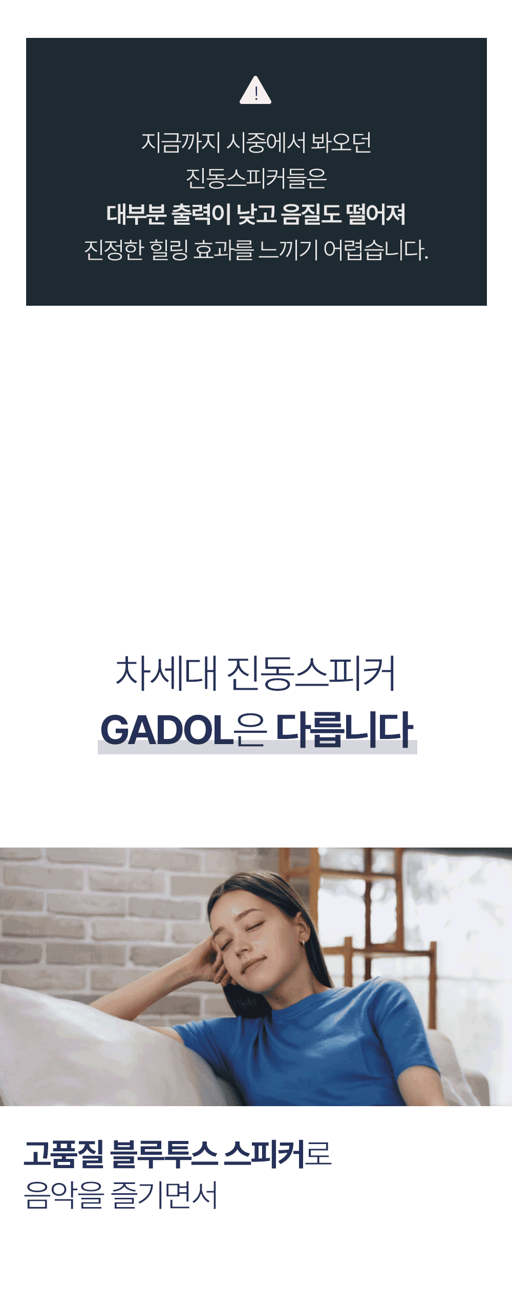 1. 🔊 GADOL振动扬声器 - 将空间转变为声音艺术品的次世代振动扬声器 2. 🎵 舒适的声音体验 - 根据空间特性提供沉浸且稳定的声音 3. 🎁 限时折扣优惠 - 1+1套装及单品限量优惠销售