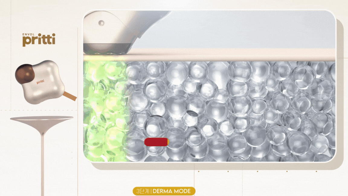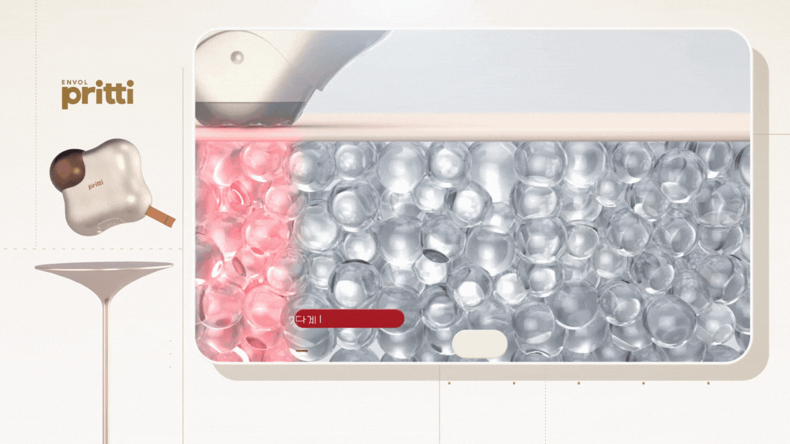 A. 피부에 기기가 너무 밀착되지 않게 사용하시면 됩니다. 기기 헤드의 물결 모양 테두리 부분을 피부에 가볍게 얹거나 올려놓는 느낌으로 사용하시면 되며, 피부에 너무 흡착되지 않도록 확인하여 사용 부탁드립니다.