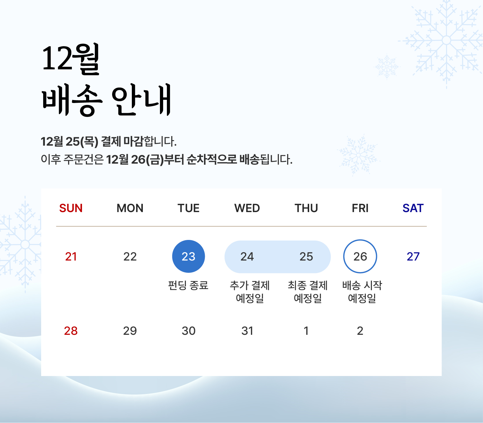 (리워드 펀딩 시, 도서/산간 지역에 해당하는 서포터 분들은 도서/산간 배송비 리워드를 함께 펀딩해주세요.)