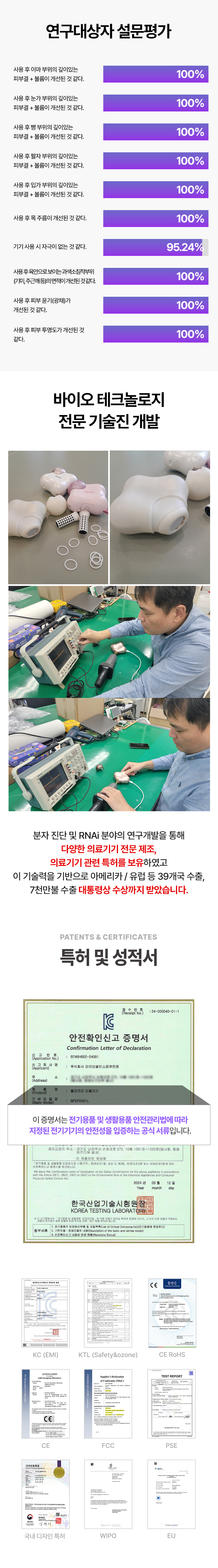 - 어린이, 수유 중인 여성, 임산부의 사용은 전문가와 상담해 주세요. 반드시 기기를 이동하면서 사용하세요. (한 곳에 머물러서 사용 시, 피부 흡착이 될 수 있습니다.)