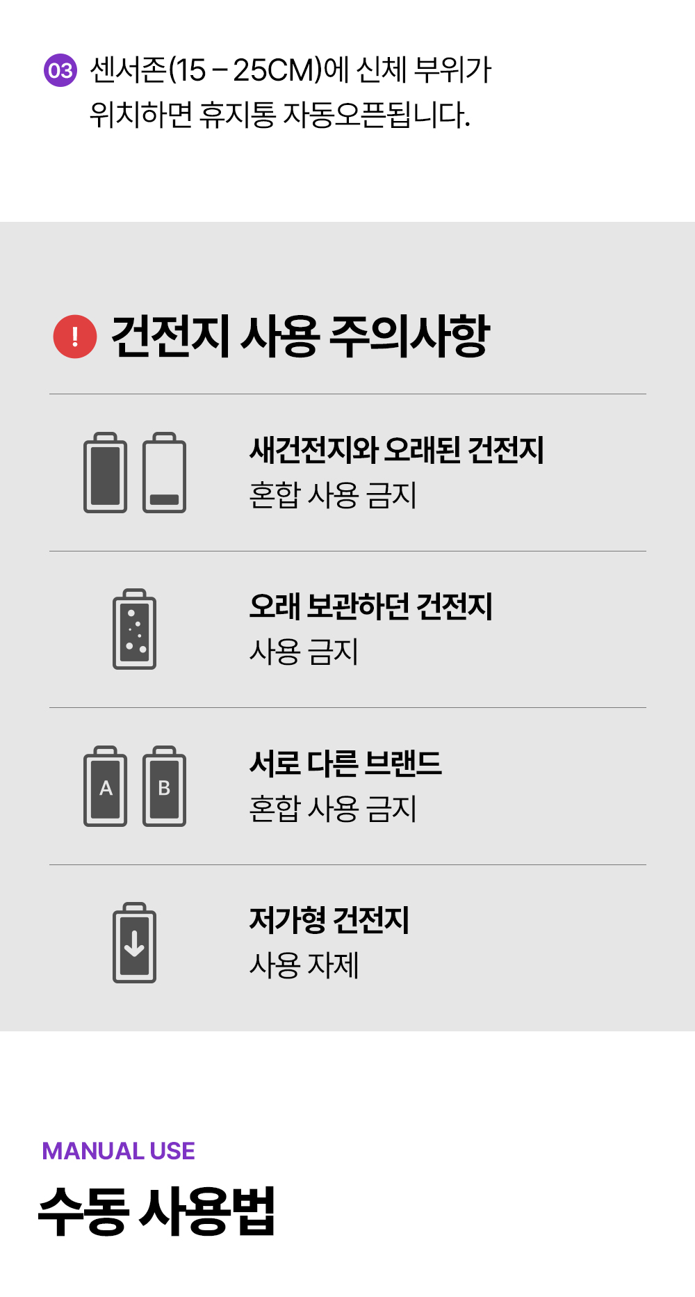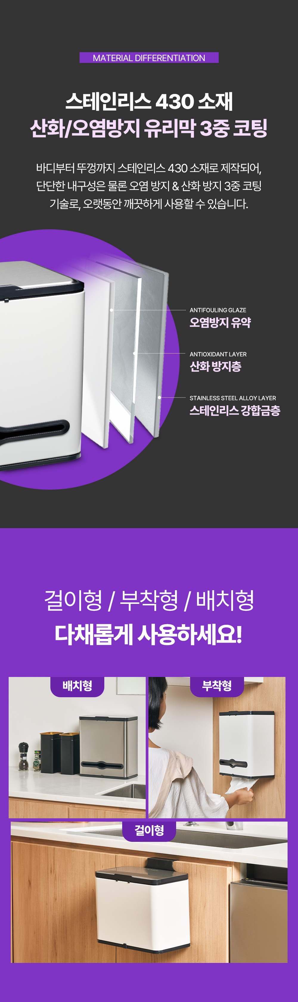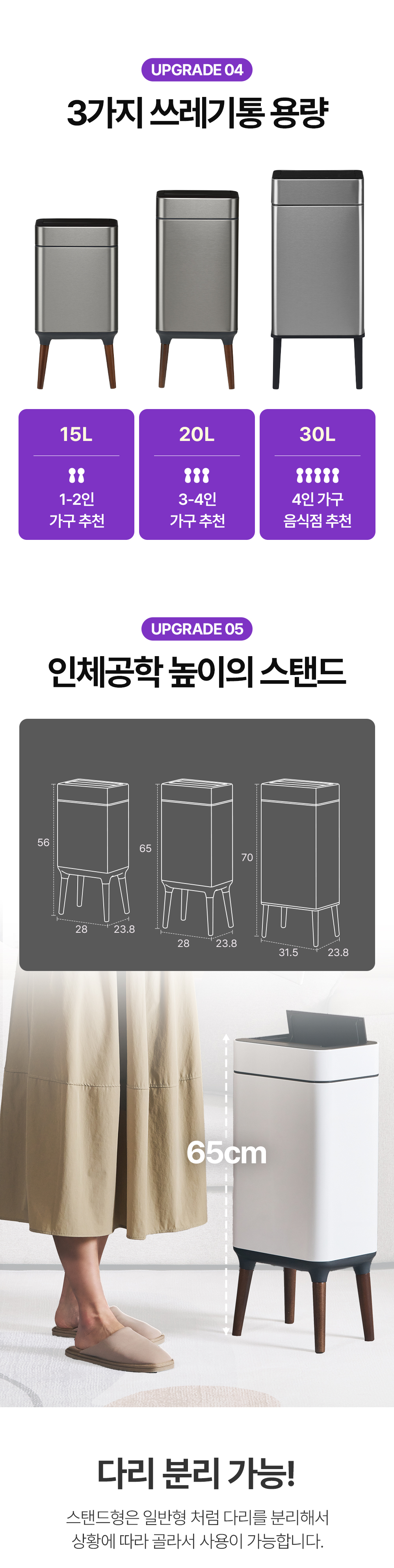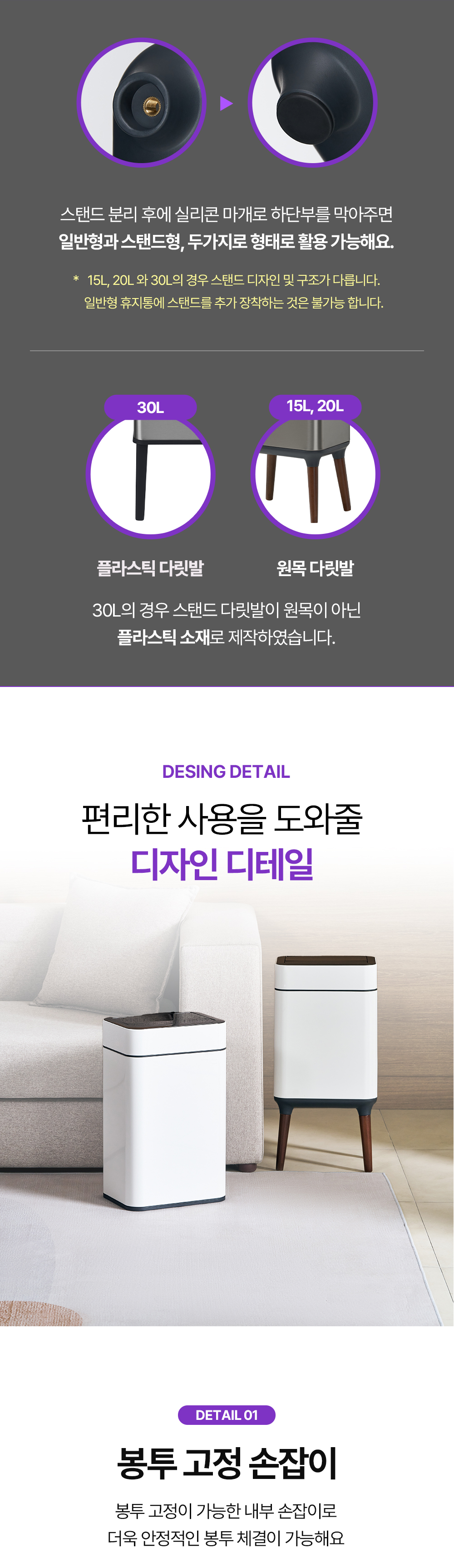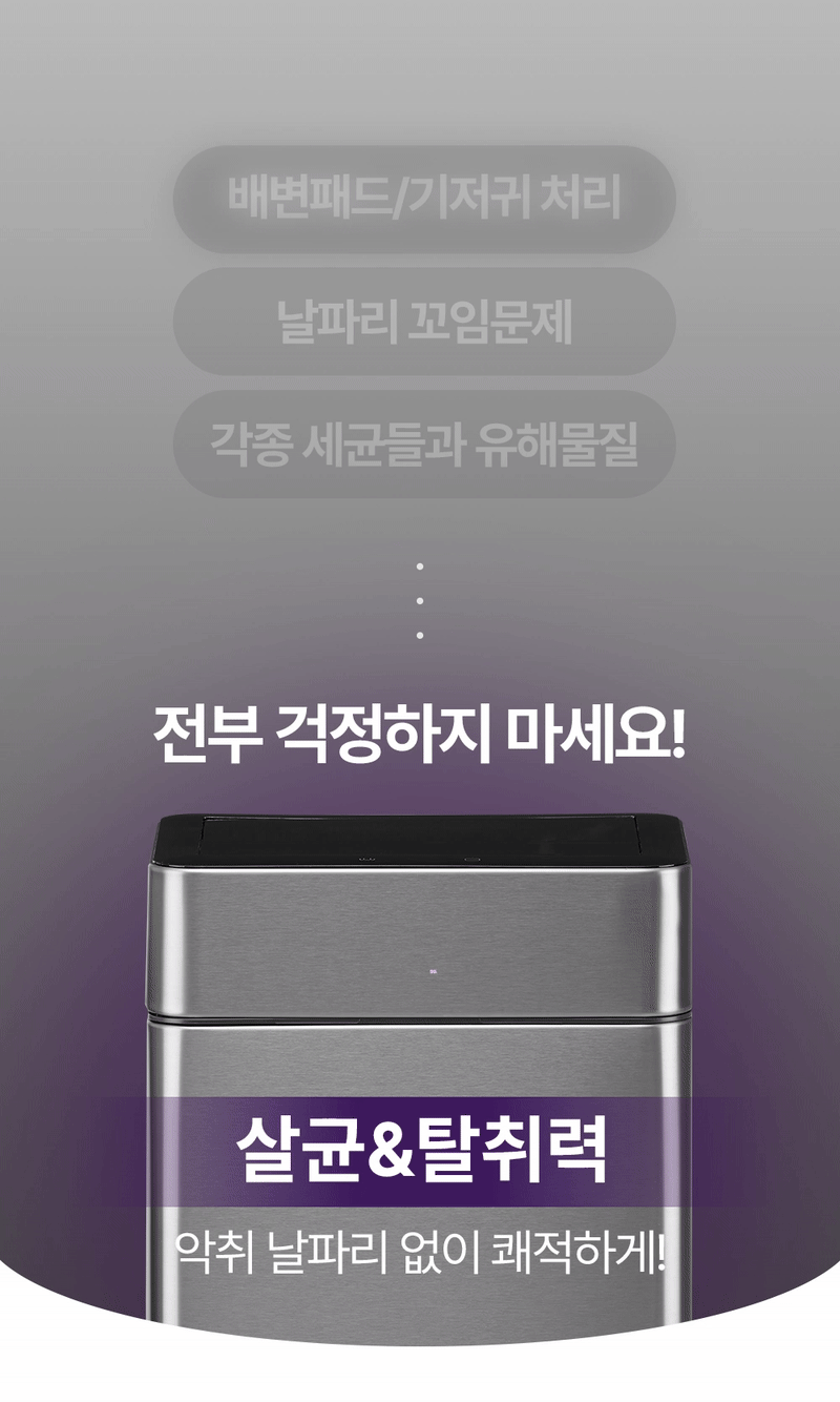 이번에 소개하는 엘페코 와이드 스마트 휴지통은 LED 작동 표시등 도입은 물론 종전에 사용하던 모터를 정밀 제어가 가능한 스텝핑 모터로 업그레이드 하여 사용감, 내구성, 소음 등을 월등히 개선한 최고의 제품이라 약속드립니다.