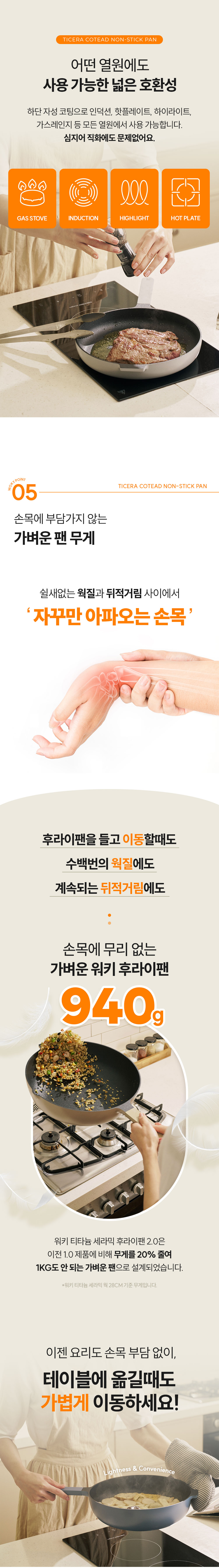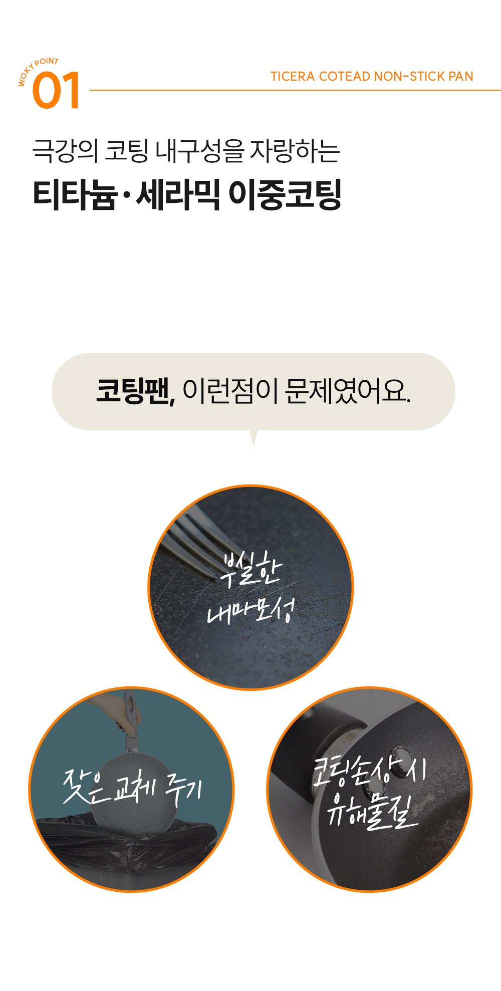 티타늄 세라믹 후라이팬은 종전 제품에 비해 디자인, 기능, 내구성을 향상시킨 신제품입니다.