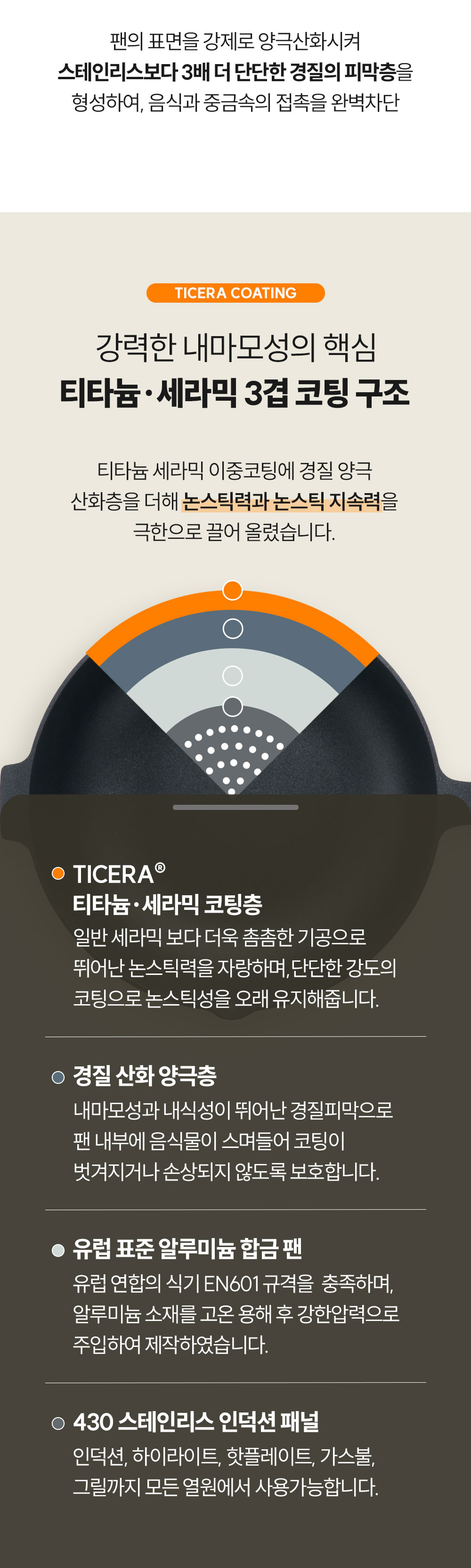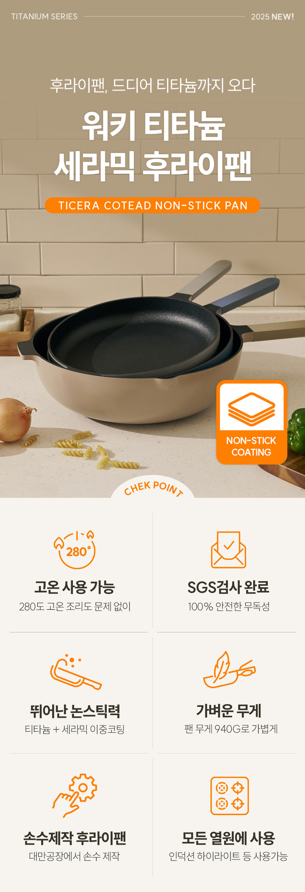 티타늄+세라믹을 활용한 새로운 제조기법으로 오랫동안 최고의 요리를 함께할 수 있는 제품입니다.