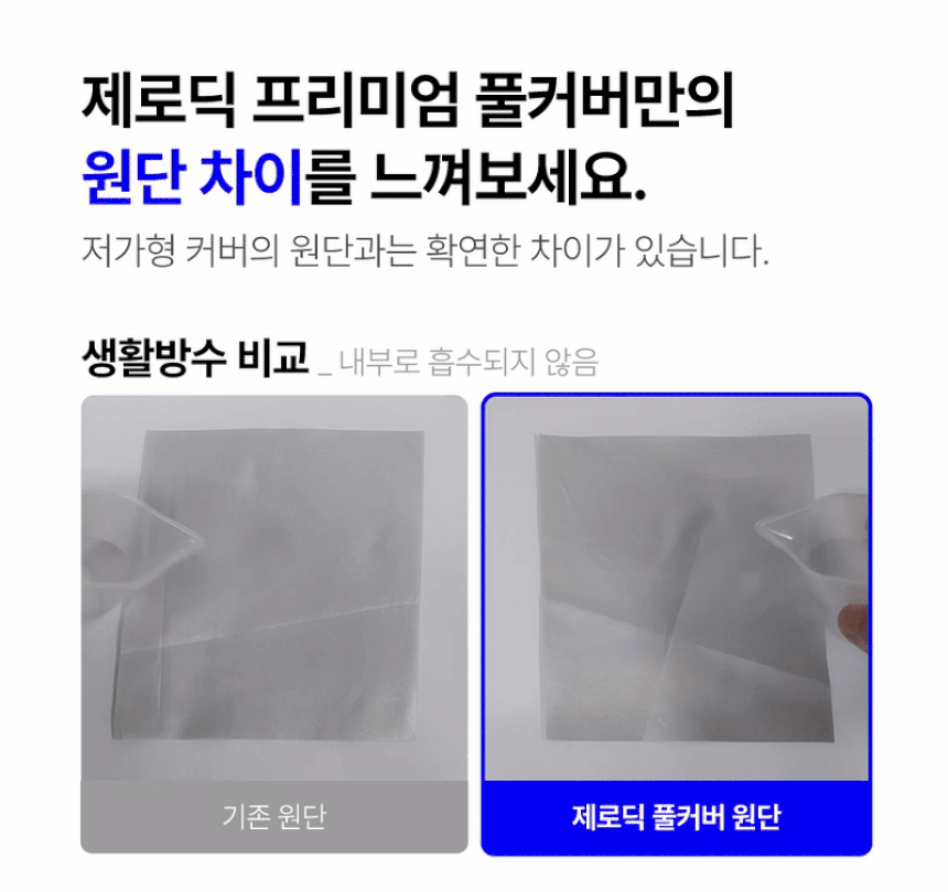 저가형 커버의 원단과는 차원이 다른 프리미엄 옥스포드 원단,