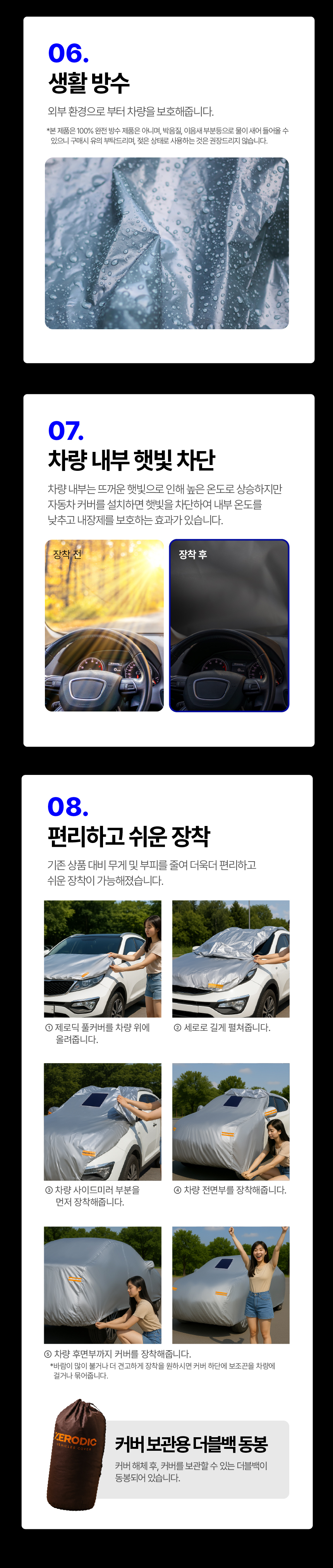 야외 주차 및 차량을 깨끗하게 보관하고 싶은 서포터님들의 고민을 해결하고자 자동차커버를 연구하고 개발하였습니다.