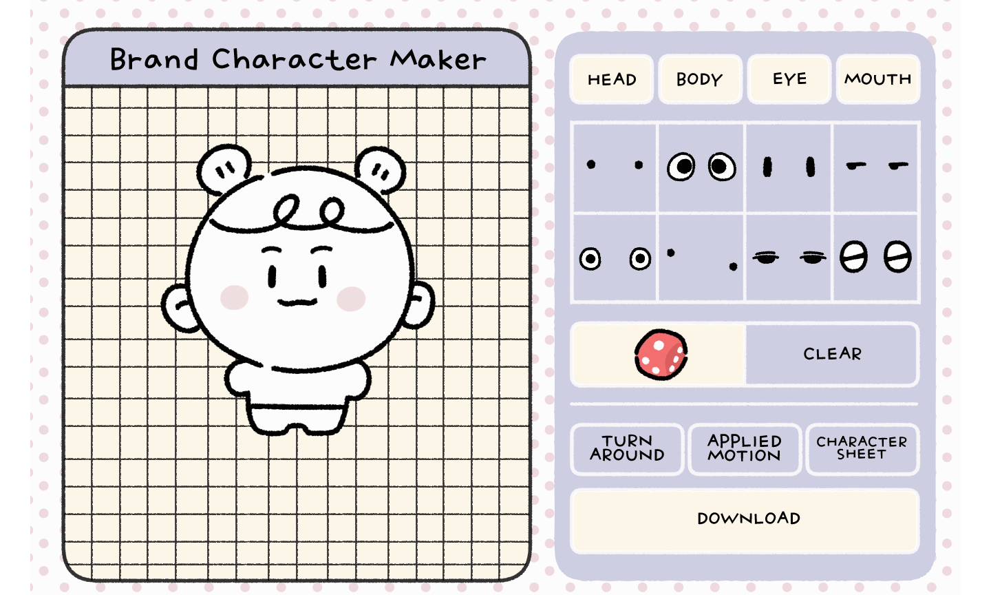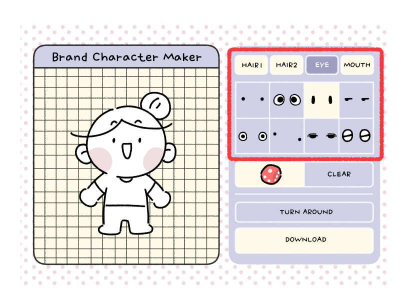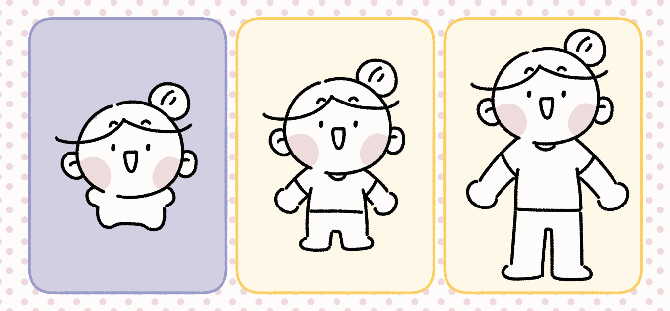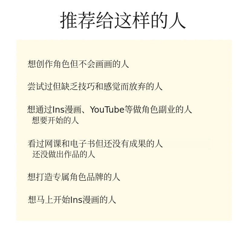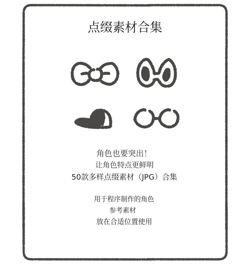 - 为防止用户间重复使用角色,仅实现基础形状(五官、发型、身体)。(角色的重点及颜色请参考电子书自行添加。)