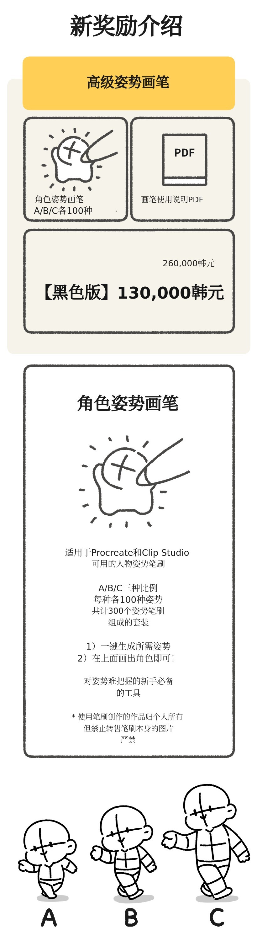 * 姿势笔刷将同时提供Clip Studio和Procreate两个软件版本。