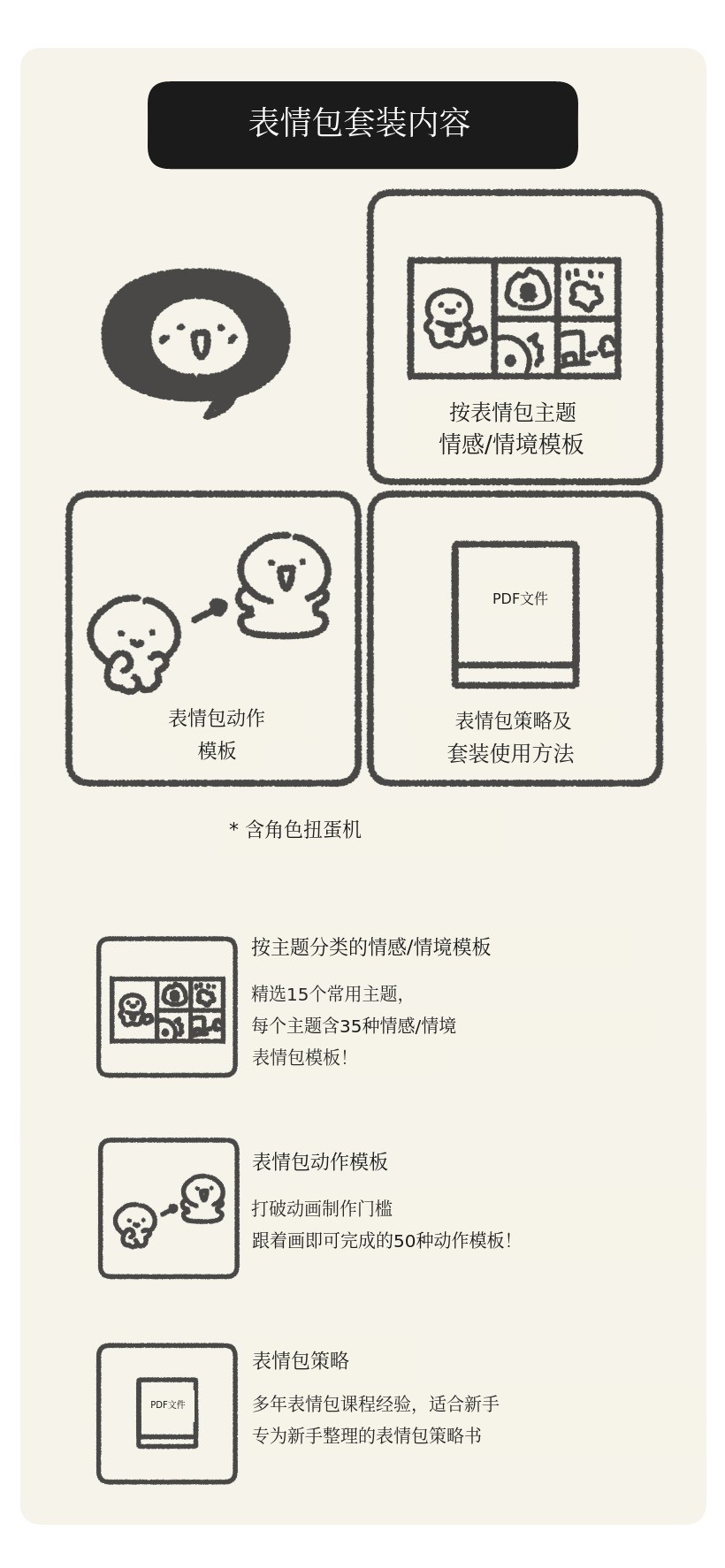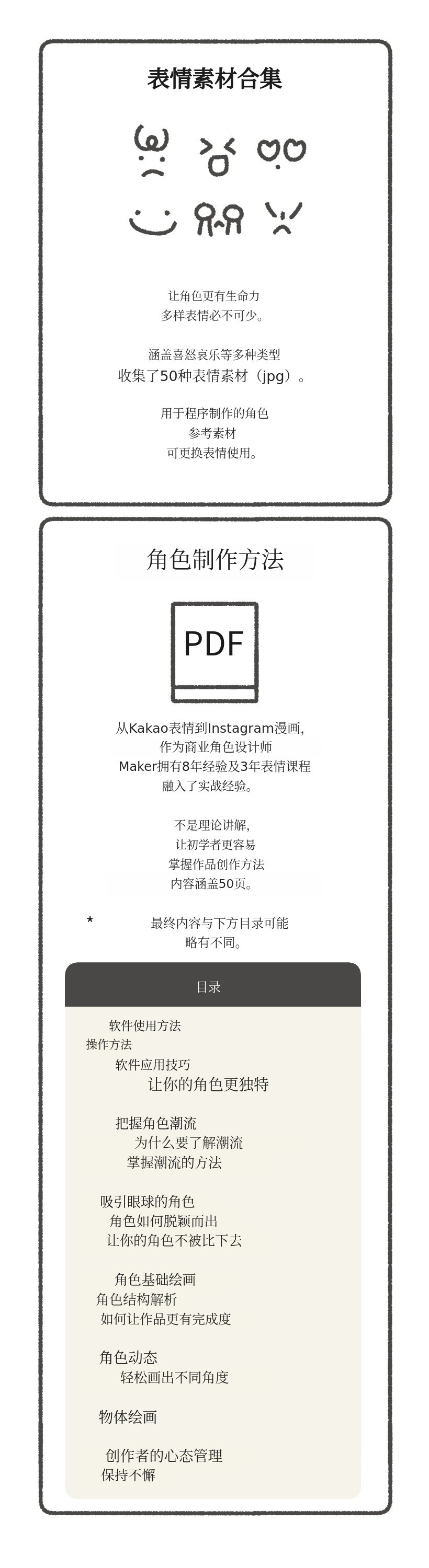 - Plus包(个人角色自动生成器 + 表情素材 + 重点素材 + 盈利型角色制作PDF)