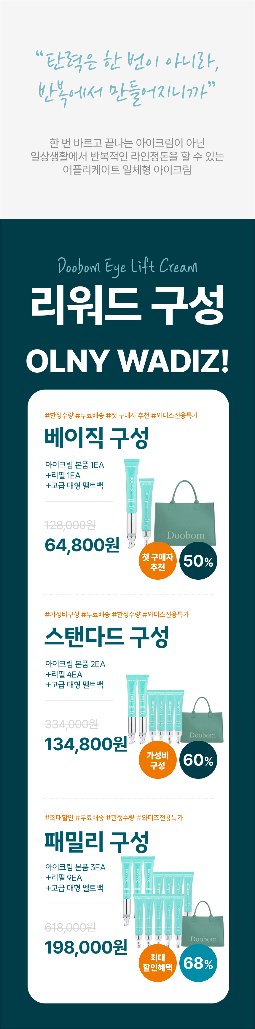 저희는 거대한 광고비 대신, 이 과정을 서포터분들과 투명하게 나누고, 조금 더 합리적인 가격으로 더 많은 분들이 두봄의 아이크림을 경험해 보실 수 있도록 와디즈를 선택했습니다.
