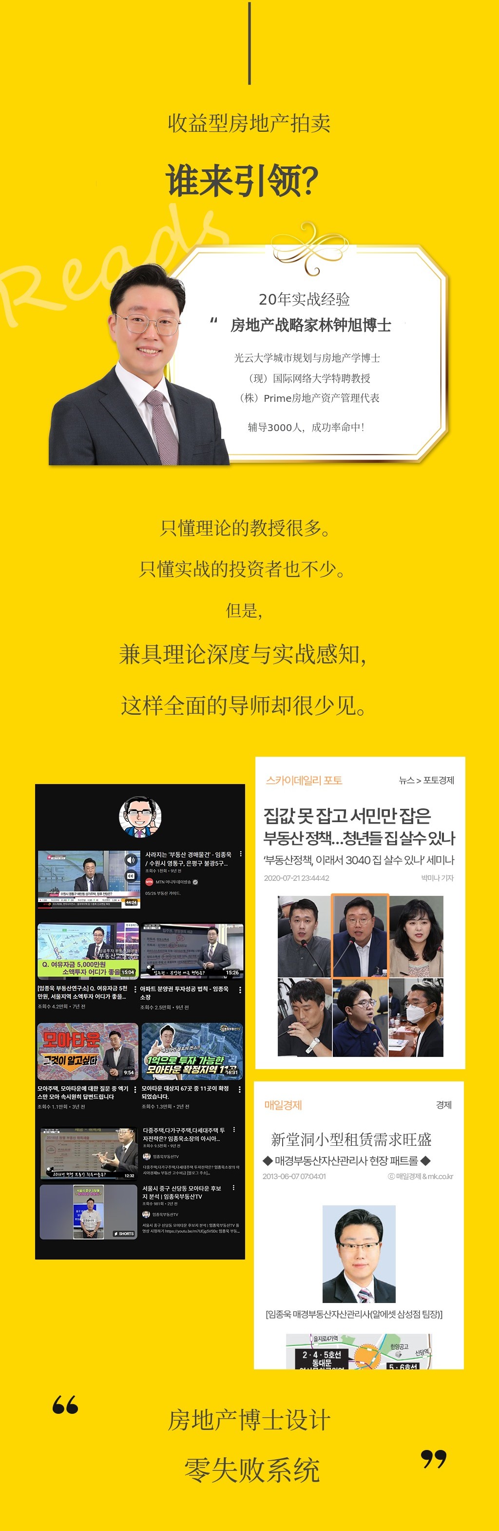 很高兴见到大家。各位支持者,我是林钟旭博士。我是光云大学城市规划房地产学博士,也是(株)Prime房地产资产管理代表,过去20年间一直活跃于讲坛与实战一线。