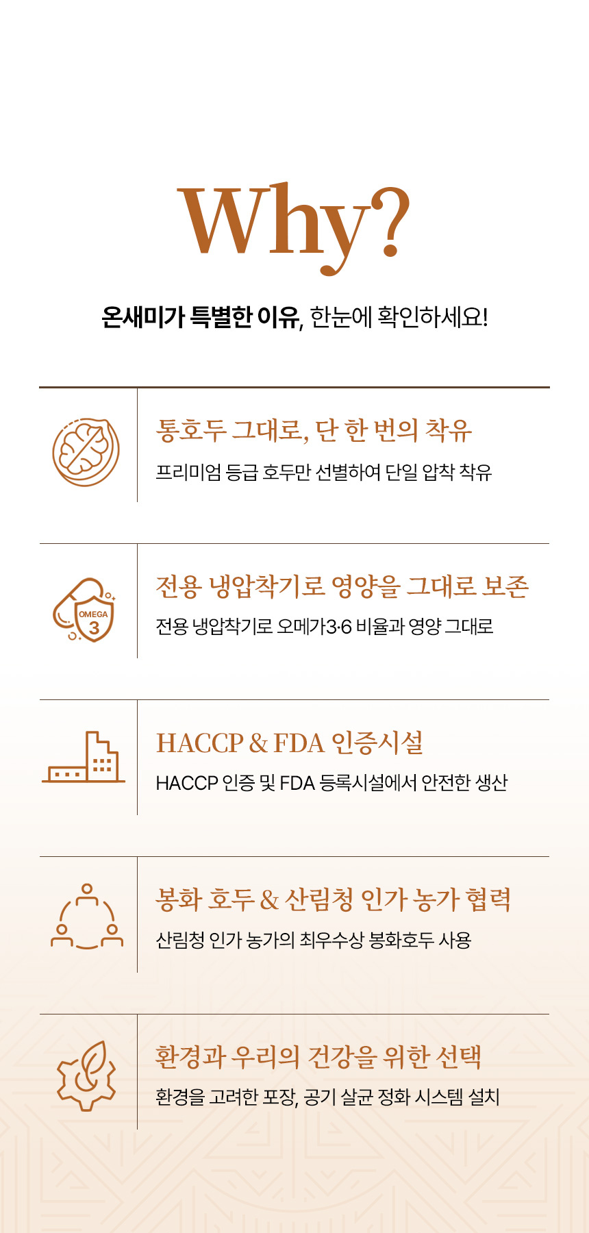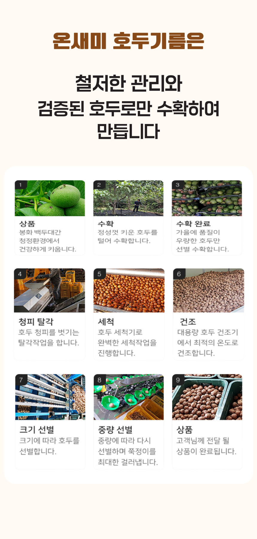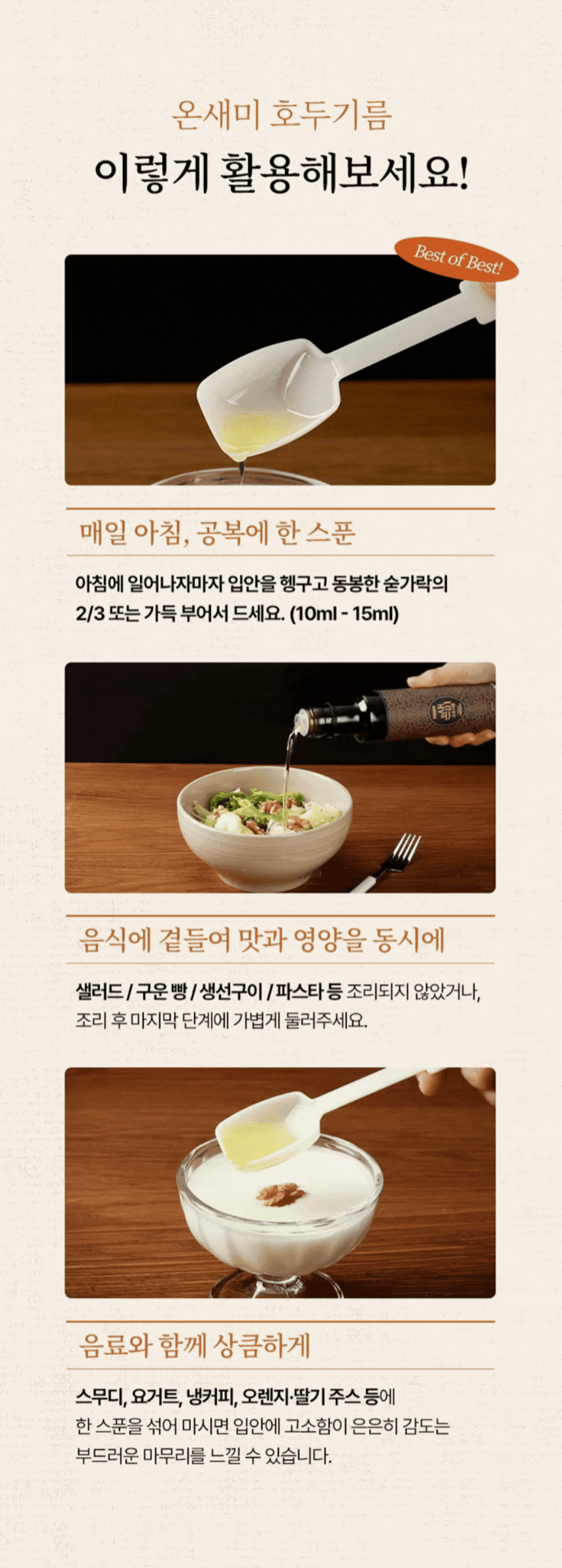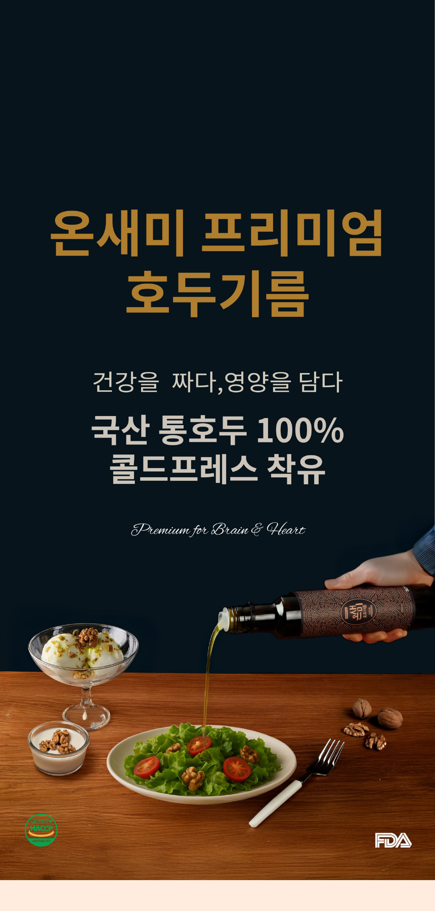 깐깐한 FDA의 기준을 통과시킨 후에도 집요하게 청결과 제품의 안정성에 몰두하는 농업기업에서 만드는 호두 오일은 궁극의 오일이라 부를만큼 자부심이 생기는 제품입니다.