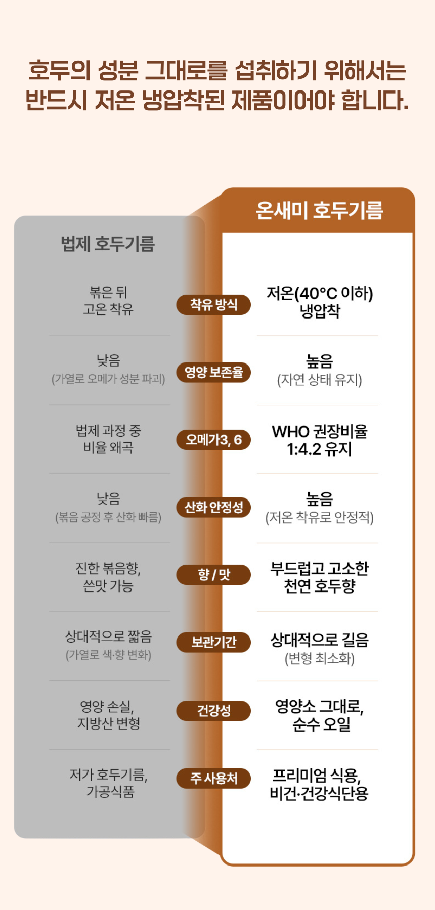 < 온새미 호두기름의 저온냉압착 과정 >