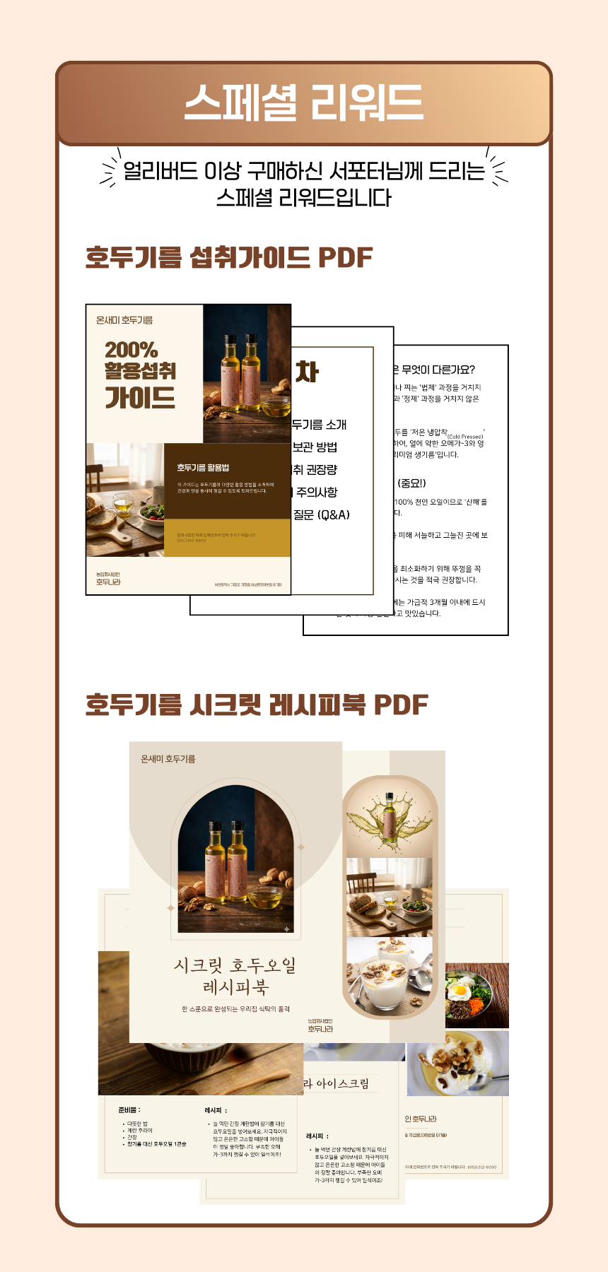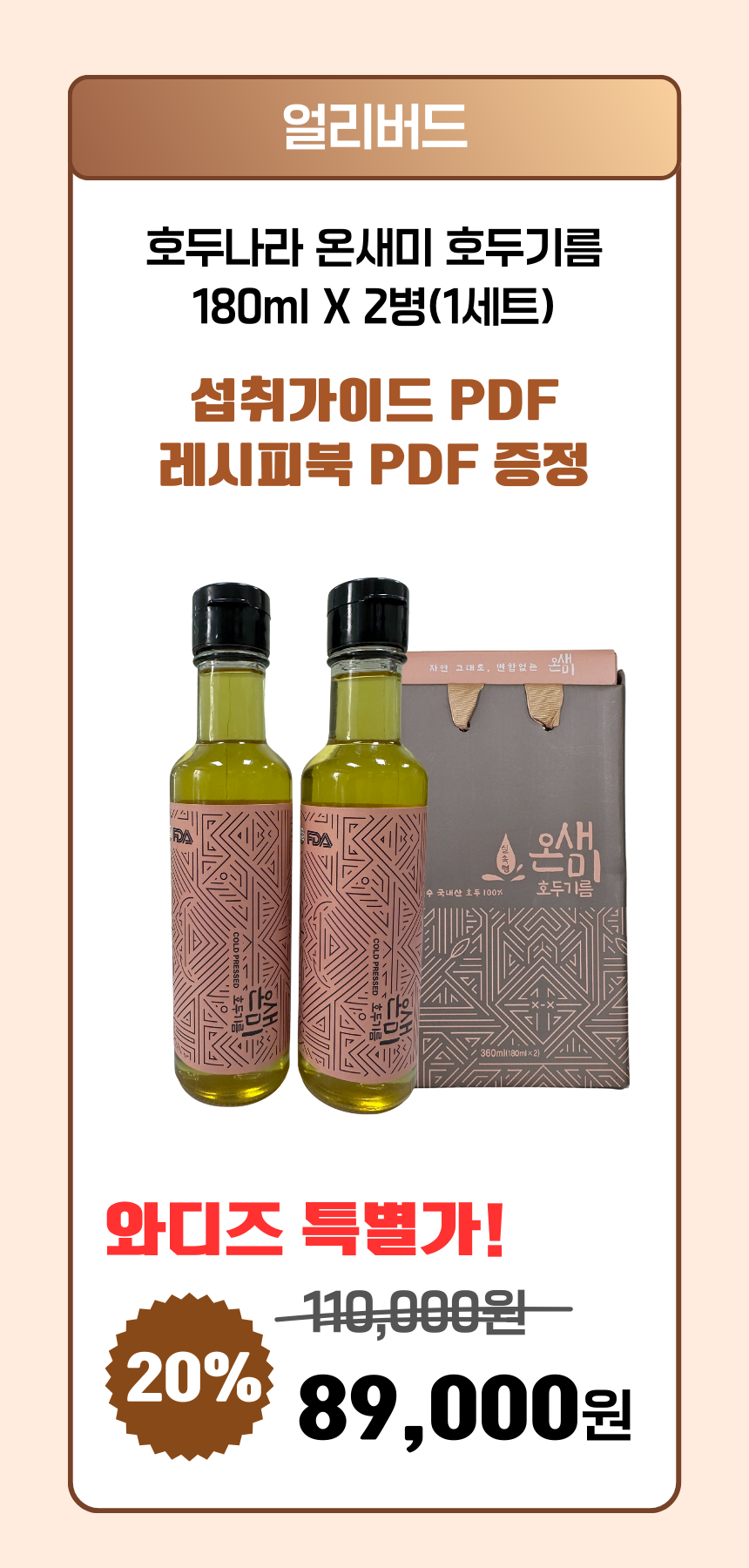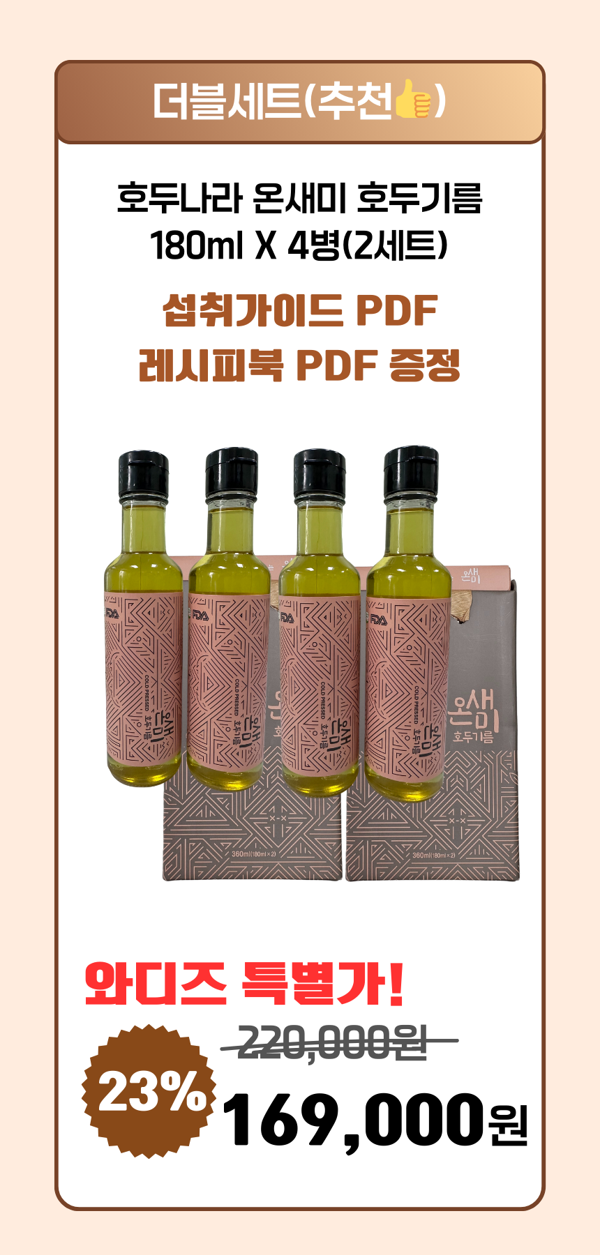 1. 🌰 100%国产优质核桃油 - 低温压榨完整保留营养和欧米伽3 2. 🧴 健康美味的天然植物油 - 浓郁香气与抗氧化性保持新鲜 3. 🎁 特别折扣及食用指南PDF - 平台独家优惠及使用说明