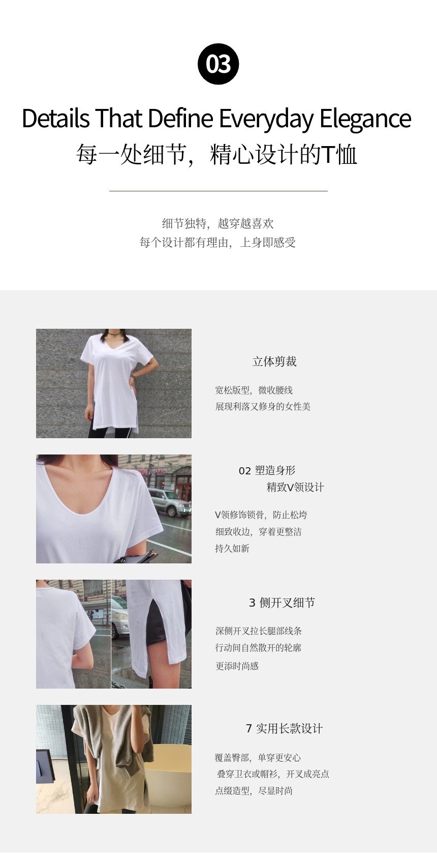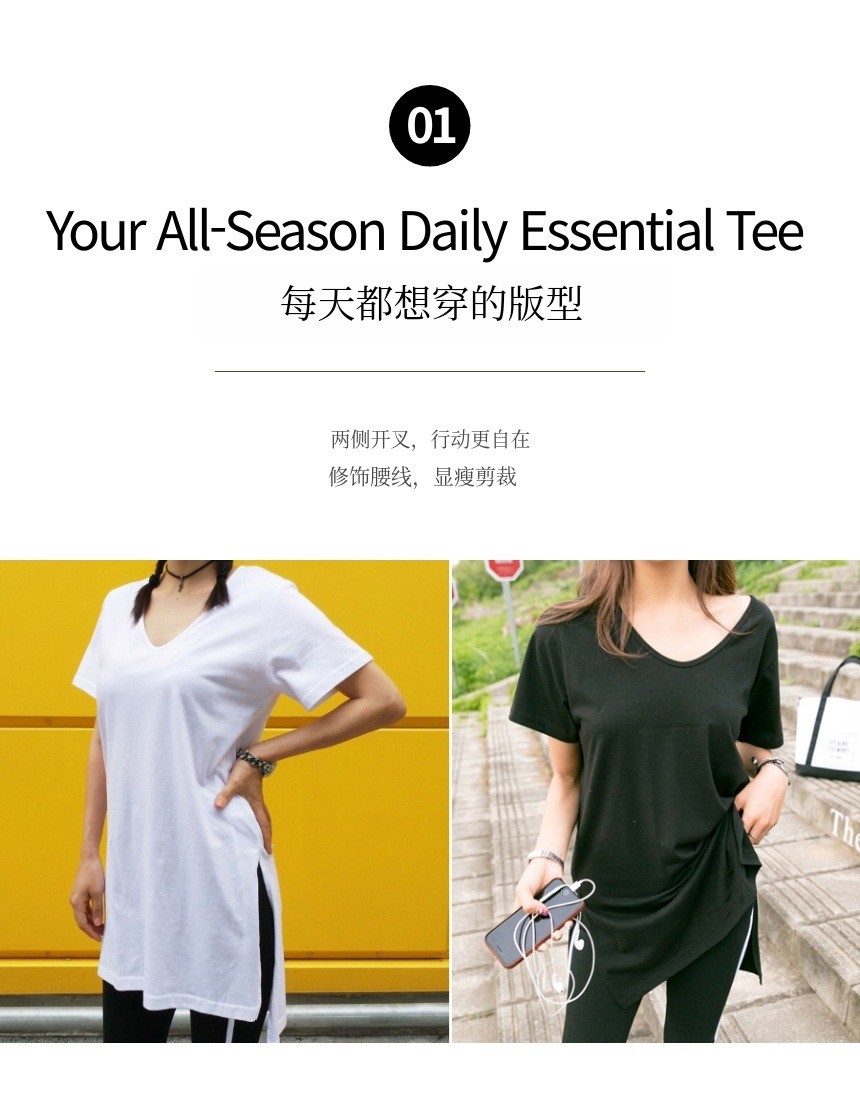 1. 👚 纯棉侧开衩长款T恤 - 覆盖臀部,舒适贴身 2. ✨ 单穿与叠穿完美合身 - 适合连帽衫和卫衣多样搭配 3. 🎁 Wadiz限量特价 - 16年验证的畅销款