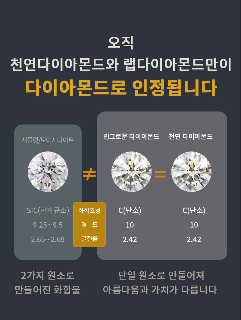 천연다이아몬드와 똑같은 성분으로 실험실에서 배양되어 만들어진 양식 다이아몬드 입니다
