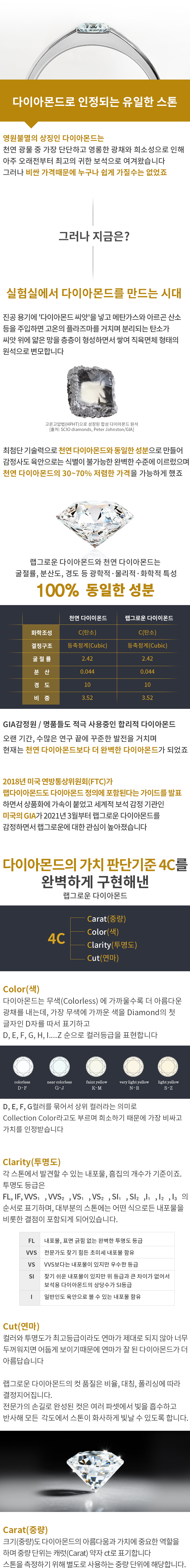 오랜 기간, 수많은 연구 끝에 현재는 천연 다이아몬드보다 더 완벽한 다이아몬드가 되었습니다