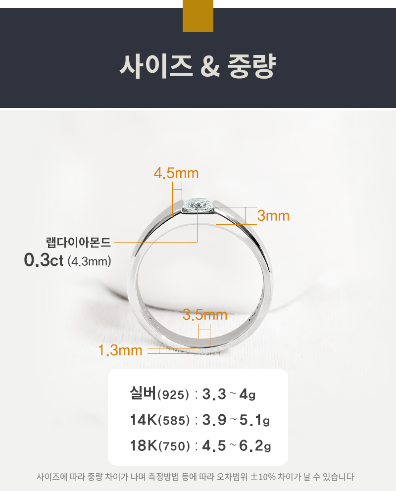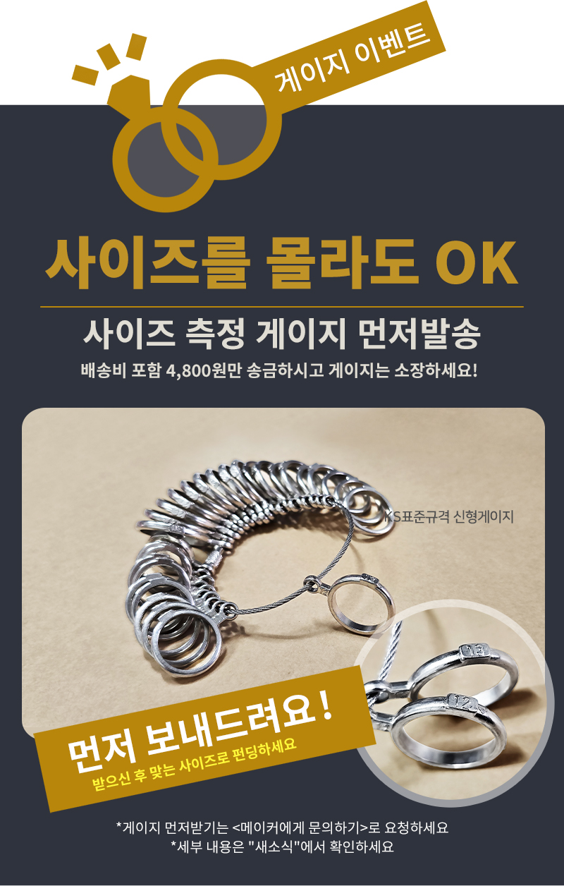 1) 표준 규격에 맞는 실버/14K/18K골드 및 명시한 다이아몬드로만 제작합니다
