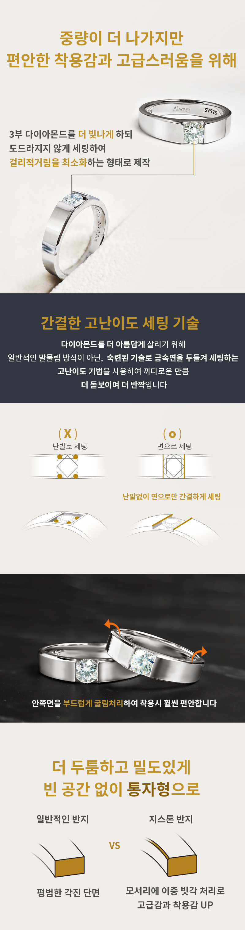 착용감이 편하고 실물이 더 고급스럽고 반짝인다