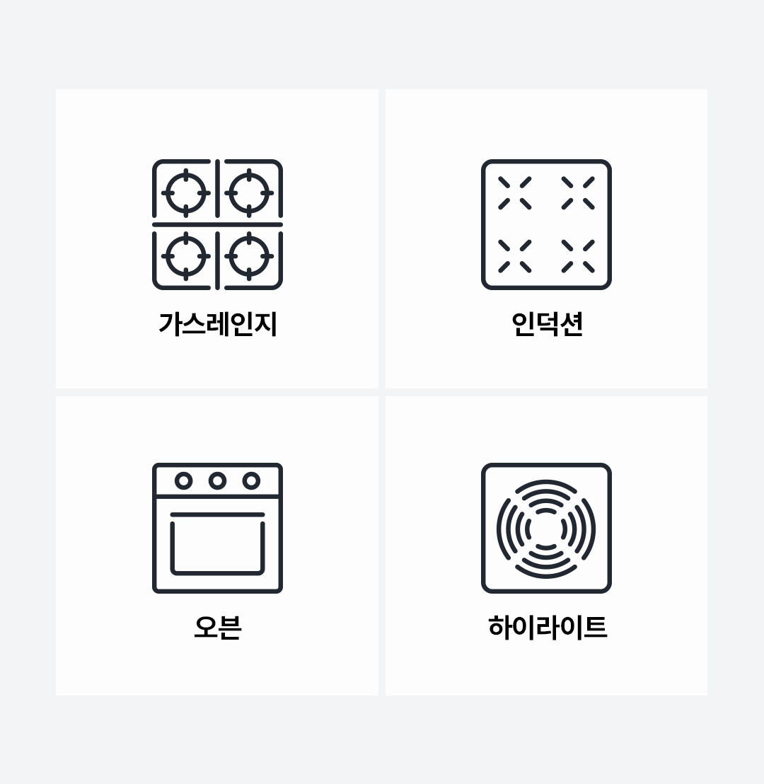 하나하나 찾아볼 필요 없이 가스레인지, 인덕션, 하이라이트, 버너